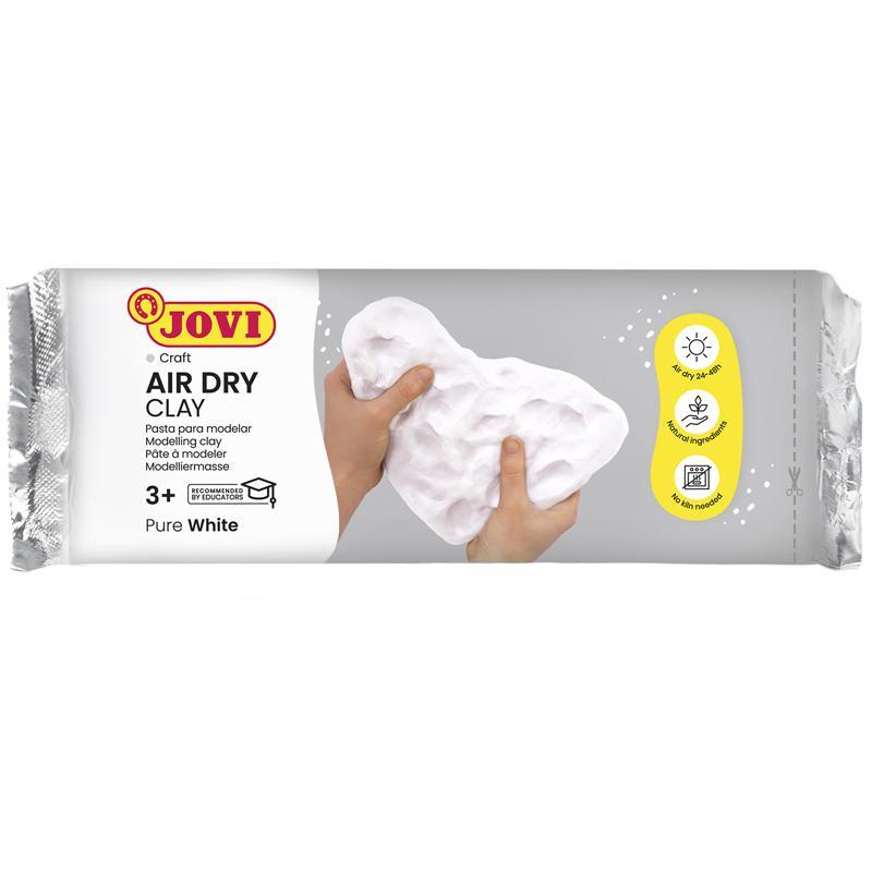 Паста для моделирования Jovi самозатвердевающая белая 1042 г<br> <br> Паста для лепки и моделирования, отвердевающая на воздухе. Готова к использованию, по свойствам напоминает глину, но работать с ней легче. Моделируется руками, при необходимости можно использовать инструменты. Пластична, легко лепится, раскатывается, режется, принимает любую форму, не липнет к рукам. Без запаха. Затвердевает на воздухе, после высыхания становится очень прочной, не трескается при высыхании. <br> Готовое изделие можно расписывать красками и декорировать в различных техниках. Хранить массу необходимо в герметичной ёмкости.<br> Отлично подойдёт для лепки дома, в школе, художественных студиях и для профессионального использования. Не предназначена для контакта с пищевыми продуктами. <br> Основной состав: вода, карбонат кальция, целлюлоза, каолин. Страна производства Испания. Размер упаковки: 98×215×32 мм. Возраст: от 3 лет.<br> Может поставляться в нескольких вариантах дизайна упаковки.
