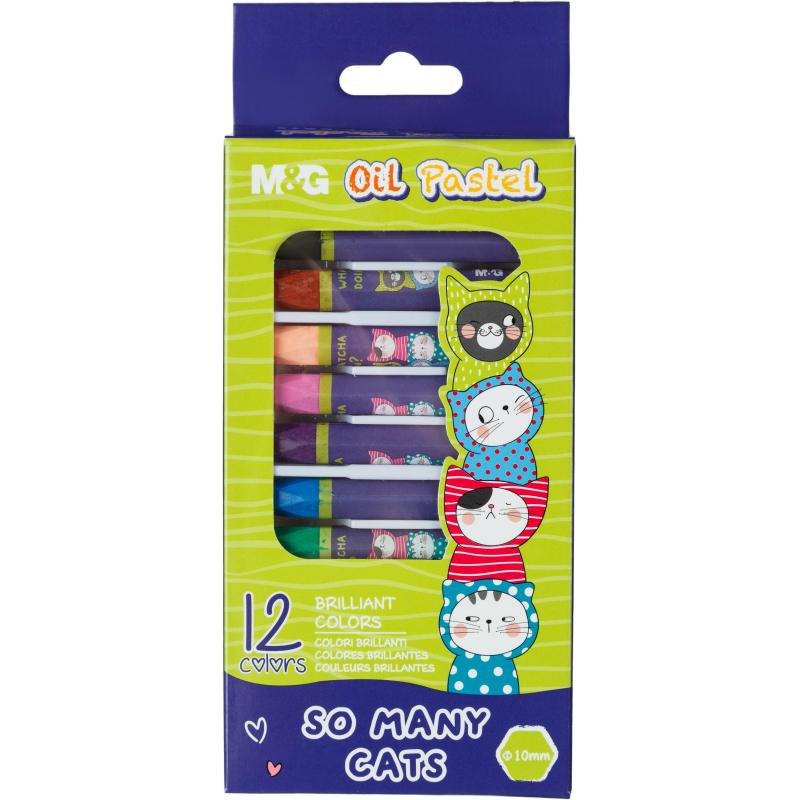 Пастель масляная M&G шестигранная 12 цветов<br> <br> Масляная пастель M&G — шестигранные мелки, в наборе 12 ярких цветов. Каждый мелок обёрнут бумагой для защиты рук от загрязнений. Пастель не крошится, обеспечивает мягкое рисование и хорошую покрывную способность. Мелки хорошо смешиваются между собой. Упаковка — картонная коробка с европодвесом. Размер упаковки: 86×20×205 мм. Длина мелка — 74 мм, ширина — 10 мм.