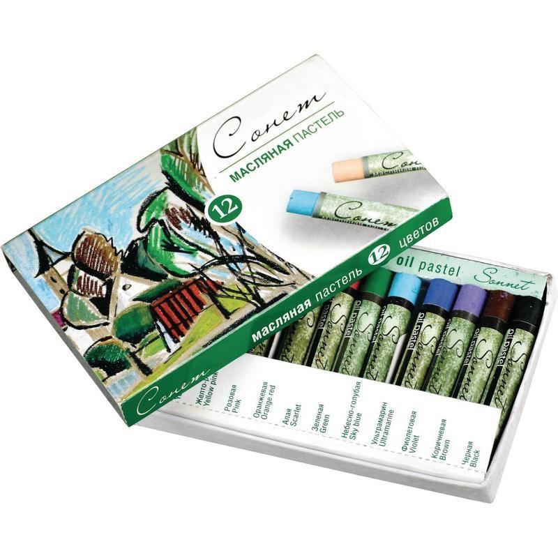 Пастель масляная Сонет круглая 12 цветов<br> <br> Пастель масляная Сонет круглая состоит из 12 цветов. Она предназначена для живописи и подходит как для начинающих, так и для профессиональных художников. Пастель отличается яркостью и интенсивностью цвета, хорошей кроющей способностью и смешиваемостью, а также мягкостью. Она легко наносится на различные фактуры: цветную бумагу, бумагу для рисования, картон, дерево и керамику. Удобна для работы на открытом воздухе, так как не требует закрепления, в отличие от сухой пастели. <br> <br> Форма пастели круглая. Упаковка — картонная коробка. Размер упаковки составляет 115×15×75 мм. Длина одной пастели — 60 мм, ширина — 8.5 мм.
