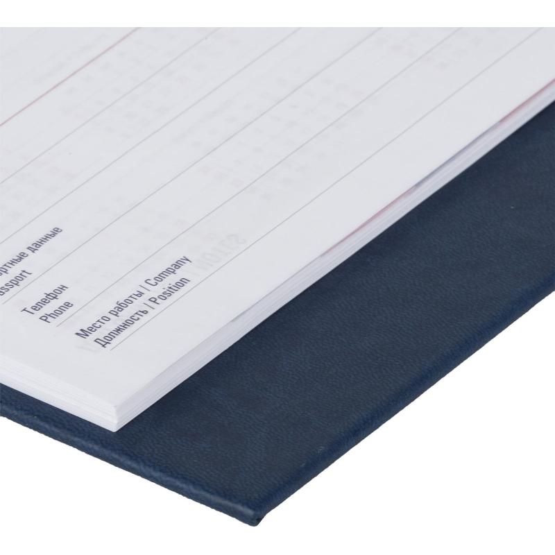 Планинг датированный Attache на 2026 год. Формат: 340×130 мм. Цвет: синий. Блок 110 страниц (55 листов) в 2 краски. Бумага офсетная 70 г/кв.м. Календарь на 2025-2026 г. Вырубка блока по месяцам. Твёрдая обложка выполнена из искусственной кожи высокого качества. Возможно нанесение логотипа на обложку, любым способом тиснения (блинт или фольга).