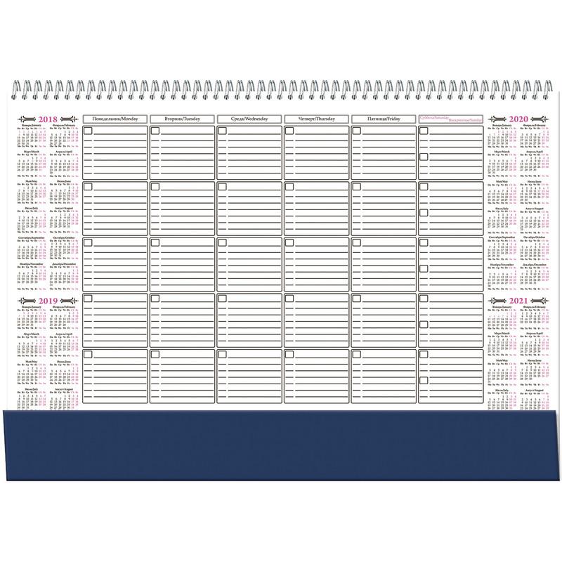 Планинг недатированный Attache предназначен для эффективного планирования рабочего, учебного и личного времени. Он позволяет удобно зафиксировать информацию о предстоящих встречах, совещаниях и прочих событиях. Твёрдая подложка выполнена из плотного картона, оклеена бумвинилом синего цвета, имеет прижимной клапан, на который можно нанести логотип, в том числе методом тиснения фольгой, шелкографией или тампопечатью. Дизайн планинга представлен в универсальном офисном стиле. Размеры изделия составляют 490×350 мм. Блок состоит из офсетной бумаги, скреплённой спиралью. На каждом листе находятся графы для всех дней текущего месяца, календарная сетка рассчитана на четыре года (2023-2026), также имеется поле для заметок.