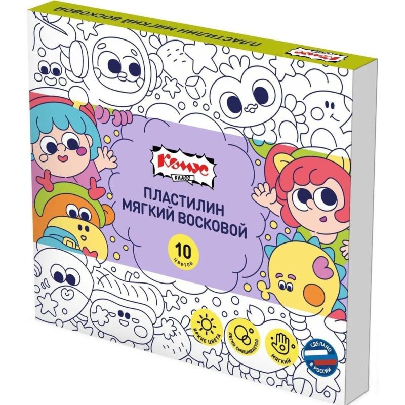 Пластилин восковой Комус Класс Миники 10 цветов 150 г<br><br>Пластилин мягкий восковой 'Комус Класс Миники' - набор из 10 брусков качественного воскового пластилина. Лепка - одно из самых полезных и продуктивных занятий для детей. Она способствует развитию воображения, мышления, мелкой моторики, дает возможность ребенку моделировать мир и свое представление о нем. <br>С пластилином 'Комус Класс Миники' лепка снизит напряжение, займет ребенка на несколько минут или даже часов, отвлечет от телевизора или планшета. Пластилин может использоваться в детских садах, школах, художественных кружках или же просто в домашних условиях. Преимуществом этого пластилина является то, что он сделан на основе воска - восковой пластилин мягче, быстрее разминается, не крошится, ярче передает цвета. Он отлично подойдет для самых маленьких скульпторов. Цветовая гамма - классическая, в набор входит стека для более точного и детального моделирования. Пластилин 'Комус Класс Миники' - это возможность дать волю воображению и радоваться своим успехам.<br> Цвета пластилина: белый, жёлтый, оранжевый, красный, коричневый, салатовый, залёный, синий, фиолетовый, чёрный.