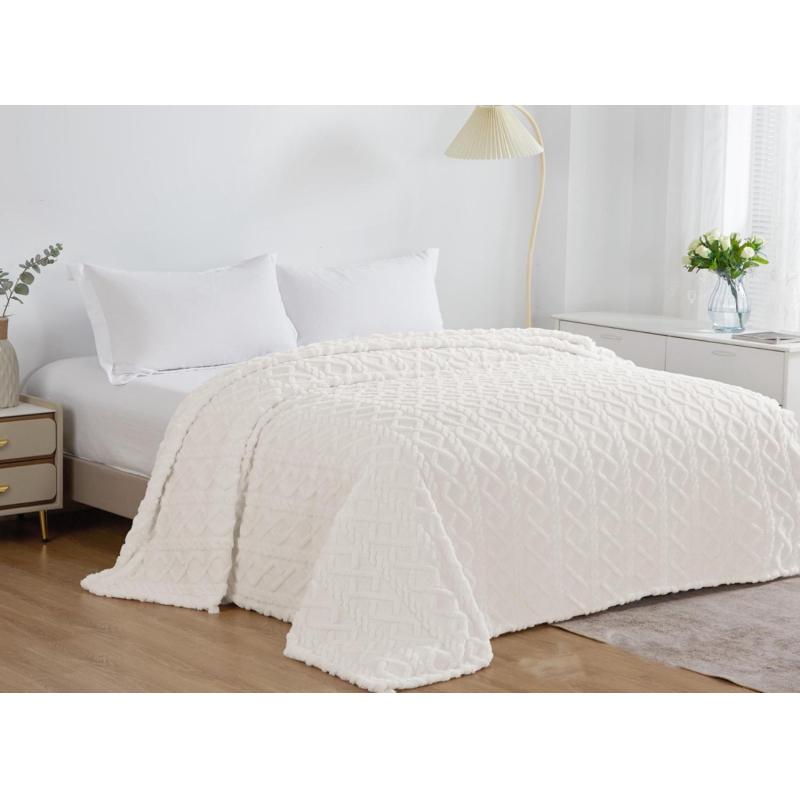 Плед велсофт 150×200 молочный<br><br>Нежный и привлекательный плюшевый плед — это не просто текстильный аксессуар, а настоящий символ уюта и тепла, который способен преобразить любое пространство вашего дома. Мягкая текстура и элегантный дизайн делают его идеальным дополнением к любому интерьеру. Плед выполнен из высококачественного велсофта, плотностью 260 г/кв.м. Спокойные пастельные оттенки и геометрический узор в виде ромбов гармонично вписываются в различные стили оформления. <br>Одним из главных достоинств этого пледа является его многофункциональность.<br>Кроме того, плед идеально подходит для активного отдыха на природе — он станет вашим надёжным спутником в путешествиях, пикниках или фотосессиях.