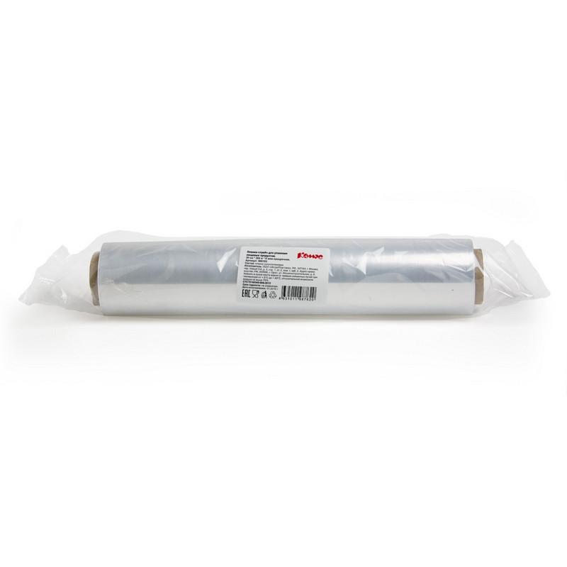 Пищевая пленка производится из экологически безопасного полиэтилена, имеет толщину 6 мкм. Не содержит бисфенола. Может быть использована для упаковки любых товаров, хорошо выдерживает отрицательные температуры. Стрейч-пленка при растяжении надежно прикрепляется к поверхности, предназначена для однократного использования. Рекомендуется для бытового использования, в столовых и прочих заведениях общественного питания для хранения готовых блюд и полуфабрикатов, подготовки порций к продаже, предохранения продуктов питания от заветривания. Поставляется в рулоне, длина пленки — 200 м, длина рулона — 30 см.