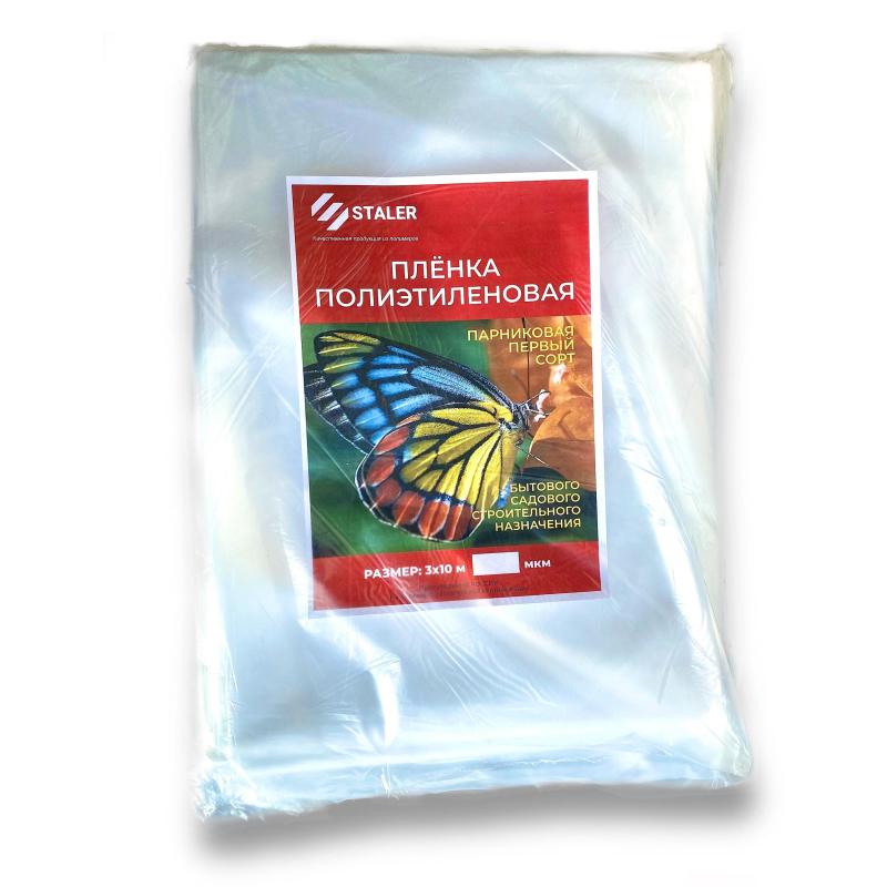 Укрывная пленка полиэтиленовая прозрачная <nobr>1-го</nobr> сорта в виде рукава изготовлена из полиэтилена высокого давления плотностью 100 мкм. Изготовлена методом экструзии из первичного сырья без добавления примесей. Пленка выпускается рукавом длинной 10 метров шириной 1,5 метра, в развернутом виде ширина рулона составляет 3 метра. Вес рулона — 2,76 кг. <BR>Данная пленка подходит для установки теплиц и парников, используется как укрывной материал при ремонтных и строительных работах, применяется на производствах мебели и бытовой химии, а также в качестве упаковки бытовых и промышленных товаров.