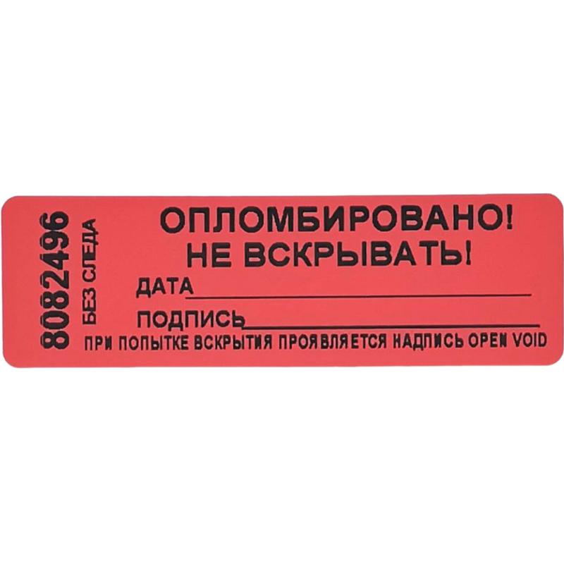 Пломба номерная полиэстер клеящаяся красная (без следа вскрытия, 500 штук в упаковке).<br>Пломба-наклейка предназначена для опечатывания объектов, которые невозможно опломбировать стандартными средствами, таких как — картонные коробки, ящики, мешки, различные пластиковые и металлические поверхности. Пломбы-наклейки предназначены для использования в широком диапазоне температур, в различных климатических условиях. Химический состав используемых материалов пленки, многослойность, технологические особенности нанесения красителей представляют собой надежную защиту от вскрытия и повторного их использования. Особенностью этих изделий является индивидуальная неповторяющаяся нумерация и наличие поля Дата/Подпись для заполнения вручную.<br>Пломбирование производится легко и просто, простым наложением изделия на участок возможного доступа. При попытке вскрытия, на изделиях в месте отклеивания, проявляются индикаторные надписи «Open Void», легко определяемые визуально и сохраняющиеся при попытке повторного наклеивания.<br>В случае обнаружения признаков вскрытия изделий или их переклеивания необходимо в присутствии комиссии произвести повторный осмотр упаковки (коробки, мешка и т.п.), описать имеющиеся признаки вскрытия, повторного наклеивания и составить коммерческий акт произвольной формы. После этого произвести вскрытие опломбированного объекта.<br>Способ применения: Снять наклейку с бумажной основы, приложить к пломбируемой поверхности, плотно пригладить.