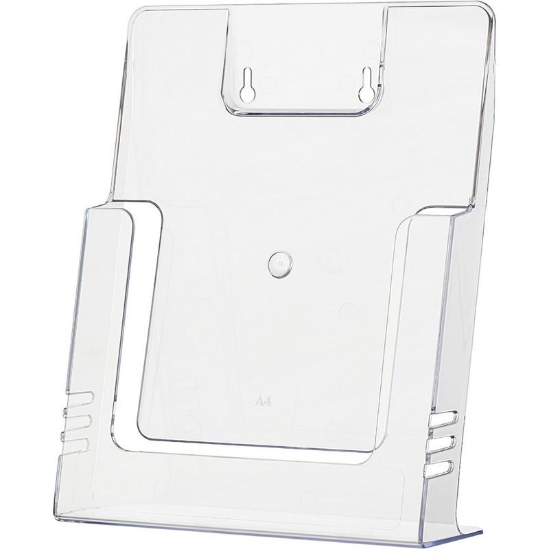 Вертикальная односторонняя подставка Attache 'Лидер' предназначена для размещения листовок рекламного характера. Для изготовления изделия использовалось высококачественное прозрачное акриловое стекло толщиной 2 мм.<BR>Конструкция имеет необходимые крепежные отверстия, позволяющие размещать дисплей не только на столе, но и на стене.<BR>На изделие может быть нанесен логотип методом аппликации или шелкографии. Для дисплея подходят листовки формата А4. Размер (ВхШхГ), мм — 290×228×26. Вес — 290 г.