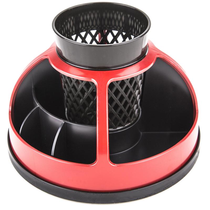 <p><nobr>Подставка-органайзер</nobr> для канцелярских мелочей Attache имеет 9 отделений для канцелярских принадлежностей и блока бумаги. Компактная и эргономичная. Выполнена из перерабатываемого высококачественного пластика красного и черного цвета. Вращается на 360 градусов.</p>