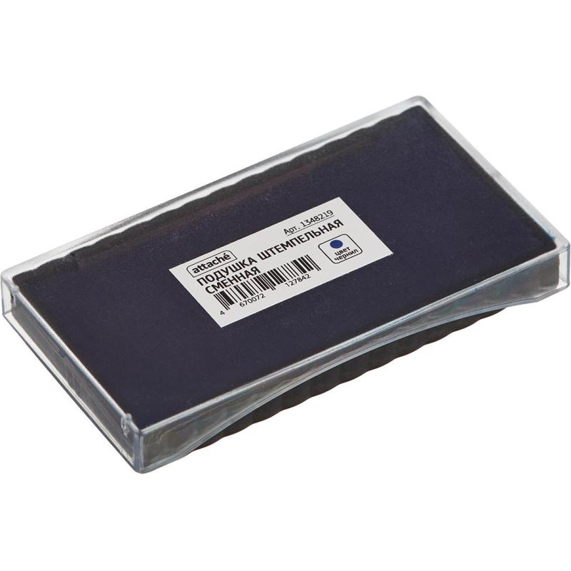Подушка штемпельная сменная Attache синяя для Attache 8032 <br><br>Подушка заправлена краской синего цвета на водной основе с добавлением глицерина. В зависимости от поверхности и абсорбирующей способности материала позволяет получить в среднем 5000 четких оттисков. Не рекомендуется заправлять краской, плотный верхний слой не пропустит ее внутрь. Поставляется в пластиковом футляре.