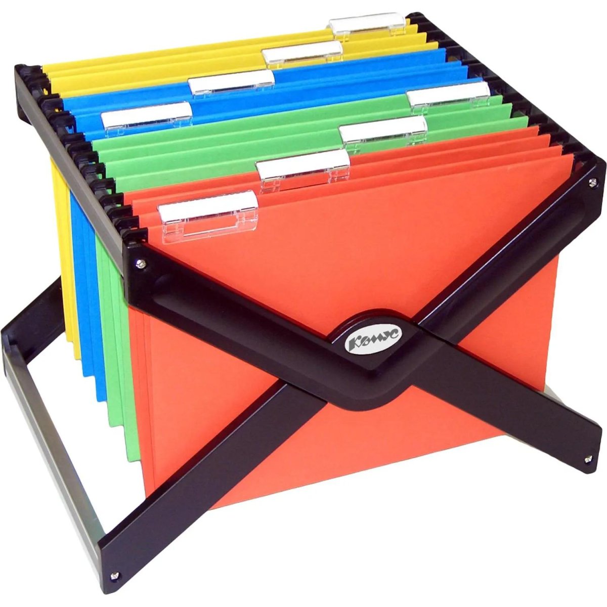 <p>Подставка для подвесных папок «Комус» выполнена из металла и пластика черного цвета. Размер — (ВxДxШ) — 275×410×320 мм. Компактно складывается. Вмещает до 25 подвесных папок формата А4 или формата Foolscap (240×370 мм). Папки в комплект не входят. Для смены формата достаточно перевернуть подставку. Подходит для хранения документов частого использования.</p>