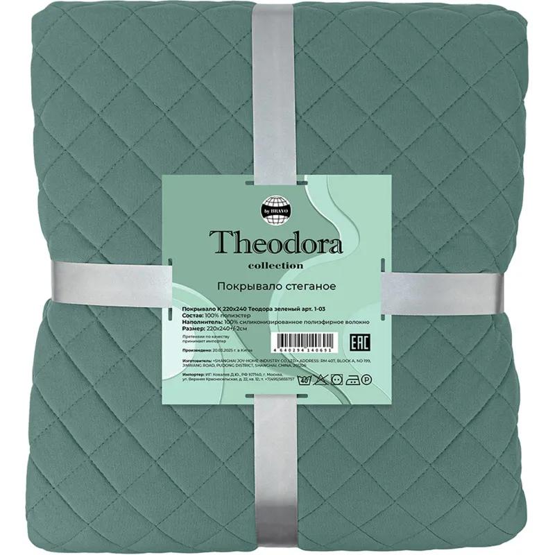 Покрывало Theodora вельвет 180×220 см зелёное<br><br>Стёганое покрывало из 100% полиэстера выполнено из трикотажной ткани с густым ворсом и узкими продольными рубчиками вельвета. Материал прочный, износостойкий и при этом мягкий на ощупь, легко переносит регулярное использование и отличается простотой ухода.<br><br>Наполнитель — силиконизированное полотно, которое сохраняет форму и объём.<br><br>Плотность 360 г/кв.м обеспечивает оптимальное сочетание лёгкости и тепла. Такое покрывало предназначено для дома и создаёт уютную атмосферу в спальне.<br><br>Рекомендации по уходу:<br><br>— Стирка: изделия стирать с нейтральными моющими средствами в тёплой воде при температуре до 40°С.<br><br>— Подходит для тёмных, цветных и пёстрых изделий из хлопка, полиэстеровых и меланжевых тканей, а также для тонкого белья из вискозы и синтетических волокон.<br><br>— Отбеливание: не отбеливать, не использовать хлорсодержащие моющие средства и порошки с отбеливателями.<br><br>— Сушка: сушить при средней температуре.<br><br>— Глажка: гладить при температуре подошвы утюга до 150°С.<br><br>— Химчистка: допускается чистка с использованием углеводорода, хлорного этилена или монофлотрихлорметана.<br><br>Тип упаковки: сумка ПВХ.