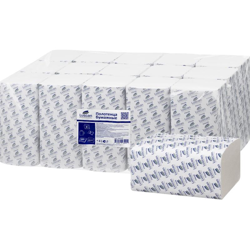 Полотенца бумажные листовые Luscan Professional H3 V-сложение 2-слойные белые 15 пачек по 200 листов<br><br>Листовые бумажные полотенца Luscan Professional с тиснением, белые, двухслойные, V-сложения. Обладают высокой впитывающей способностью, подходят для общественных зон со средней проходимостью, например, в торгово-развлекательных центрах, офисных зданиях, медицинских и образовательных учреждениях и на объектах транспорта. Эффективно высушивают руки. Листовая подача поможет лучше контролировать расход и обеспечивает максимальную гигиеничность: они выдаются поштучно, что исключает соприкосновение рук со следующим листом. Правила использования: вскрыть упаковку, достать бумажное полотенце, использовать полотенце по назначению в диспенсере или без него.<br>Характеристики:- состав: 100% первичная целлюлоза;- белизна : 85%- цвет: белый;- количество слоёв: 2;- тиснение: да;- размер листа: 230×230 мм;- плотность 17 г/м2;- в пачке 200 листов;- в упаковке 15 пачек.