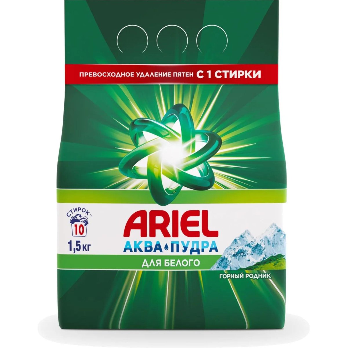 <b>Назначение:</b> порошок стиральный Ariel Горный родник для использования в стиральных машинах любого типа. Рекомендованная температура стирки указана на ярлыках текстильных изделий. Не предназначен для стирки изделий из шёлка и шерсти. Рекомендовано ведущими производителями стиральных машин для безупречной результатов стирки и защиты стиральной машины от известкового налёта и накипи.<br><br><b>Способ применения:</b> Насыпьте необходимое количество порошка в соответствующее отделение стиральной машины перед началом стирки. Подробная информация о дозировке указана на упаковке.<br><br><b>Меры предосторожности:</b> Беречь от детей. Избегать попадания в глаза. При попадании в глаза -немедленно промыть проточной водой. Не глотать. При проглатывании обратитесь за медицинской помощью. Хранить вдали от пищевых продуктов. При повышенной чувствительности и повреждениях кожи избегать длительного контакта с любыми средствами для стирки.<br><br><b>Состав:</b> 5-15% анионные ПАВ, <5% неионогенные ПАВ, отбеливающие вещества на основе кислорода, поликарбоксилаты, цеолиты, энзимы, оптические отбеливатели, ароматизирующие компоненты.<br><br><b>Условия хранения:</b> хранить в недоступном для детей месте.<br><br><b>Срок годности:</b> 24 месяца с даты производства, указанной на упаковке.