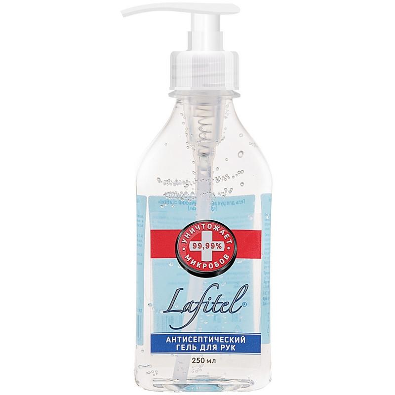 Дезинфицирующее средство (антисептик) Lafitel Gelios 0.25 л<br><br><b>Назначение:</b> Применяется в качестве средства для быстрой санации рук. Гель на основе изопропилового и пропилового спирта.<br><br><b>Способ применения:</b> гель нанести на кисти рук и втирать в кожу не менее 1 минуты до полного высыхания.<br><br><b>Меры предосторожности:</b> Беречь от огня! Не принимать внутрь. Хранить в месте, недоступном для детей. При попадании в глаза — промыть водой.<br><br><b>Состав:</b> Спирт изопропиловый (52%), вода, спирт пропиловый (13%), пропиленгликоль, глицерин, карбомер, гель Алоэ Вера, парфюмерная композиция, аминометилпропилен, ментол.<br><br><b>Срок годности:</b> 3 года. ГОСТ/ТУ: ГОСТ 31695–2012