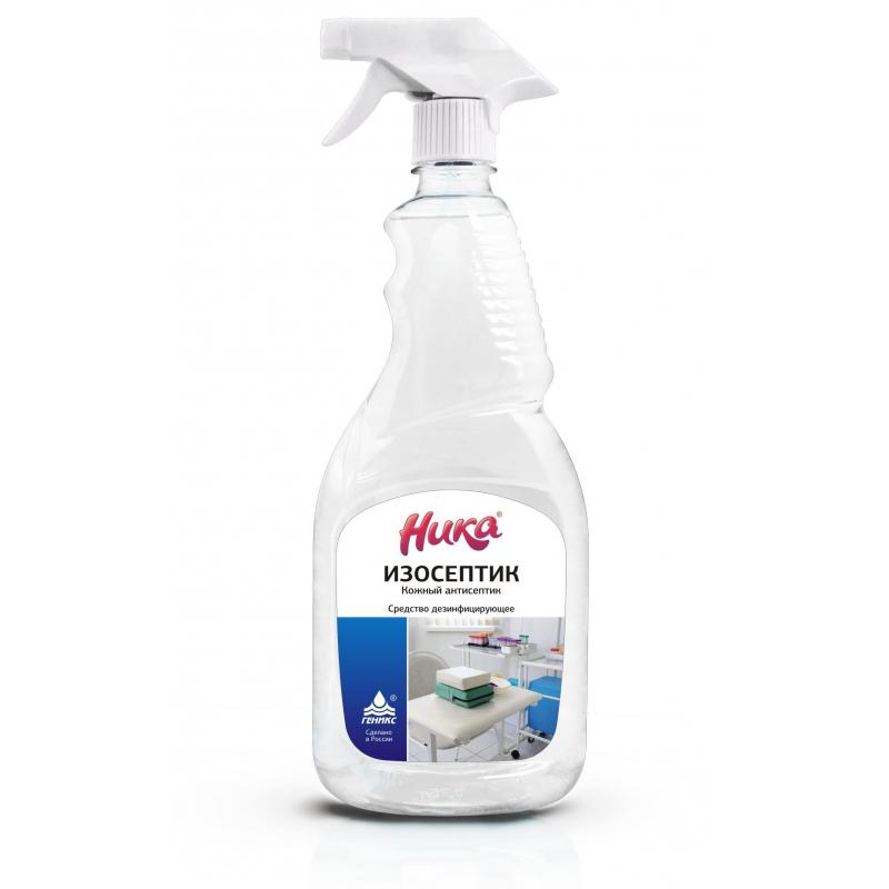 Дезинфицирующее средство (антисептик) Ника Изосептик 0.5 л<br><br><b>Назначение:</b> кожный антисептик Ника Изосептик предназначен для гигиенической обработки рук, экспресс-дезинфекции и очистки различных твёрдых непористых поверхностей, предметов в том числе, загрязнённых кровью, дезинфекции обуви.<br><br><b>Способ применения:</b><br>— Гигиеническая обработка рук: 3 мл — 30 секунд.<br>— Экспресс-дезинфекция поверхностей, оборудования: при бактериальной инфекции — 30 секунд; при туберкулёзе, вирусной, грибковой инфекции — З минуты.<br>Антимикробная активность: бактерии (включая возбудителей кишечных инфекций), туберкулёз, вирусы (ОРВИ, гепатиты всех видов, герпес), дрожжеподобные грибы. Разрешено на предприятиях общественного питания, пищевой промышленности, в лечебно-профилактических, детских школьных и дошкольных учреждениях, на объектах сферы обслуживания и в быту населением. Утверждено к применению Роспотребнадзором. Соответствует санитарным нормам.<br><br><b>Состав:</b> изопропиловый спирт 65%, ЧАС 0.2%, функциональные добавки, увлажняющие компоненты.<br><br><b>Срок годности:</b> 3 года с момента производства (при соблюдении условий хранения, рекомендованных производителем).: