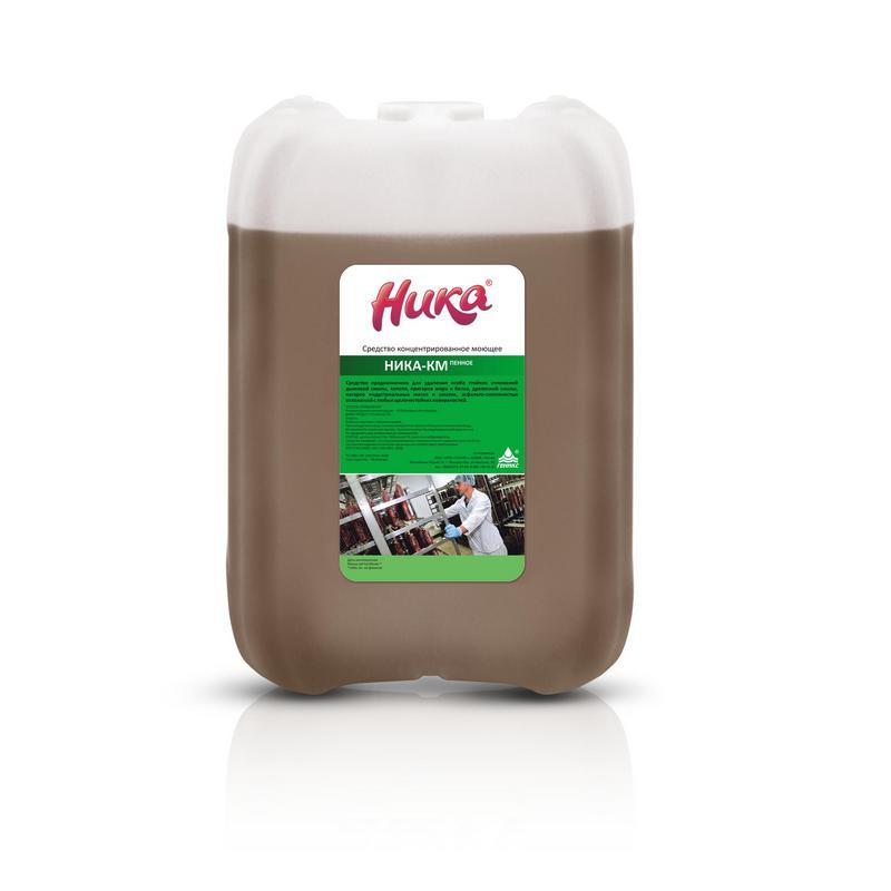 Моющее средство для удаления масложировых загрязнений и нагара Ника-КМ Пенное 6 кг (концентрат)<br><br><b>Назначение:</b><br>Средство предназначено для удаления особо стойких отложений дымовой смолы, копоти, пригаров жира и белка, древесной смолы, нагаров индустриальных масел и смазок, асфальто-смолянистых отложений с любых щёлочестойких поверхностей.<br>Область применения:<br>— предприятия молочной промышленности<br>— предприятия мясной промышленности<br>— предприятия по производству напитков<br>— предприятия хлебопекарной промышленности.<br><br><b>Способ применения:</b> рекомендуемая концентрация 3-5%.<br><br><b>Меры предосторожности:</b><br>При попадании в глаза, на кожу немедленно промыть большим количеством воды.<br>Хранить в недоступном для детей месте.<br><br><b>Состав:</b> щёлочь ≥15%, ПАВ ≤5%, комплексообразователь.<br><br><b>Срок годности:</b> 18 месяцев..