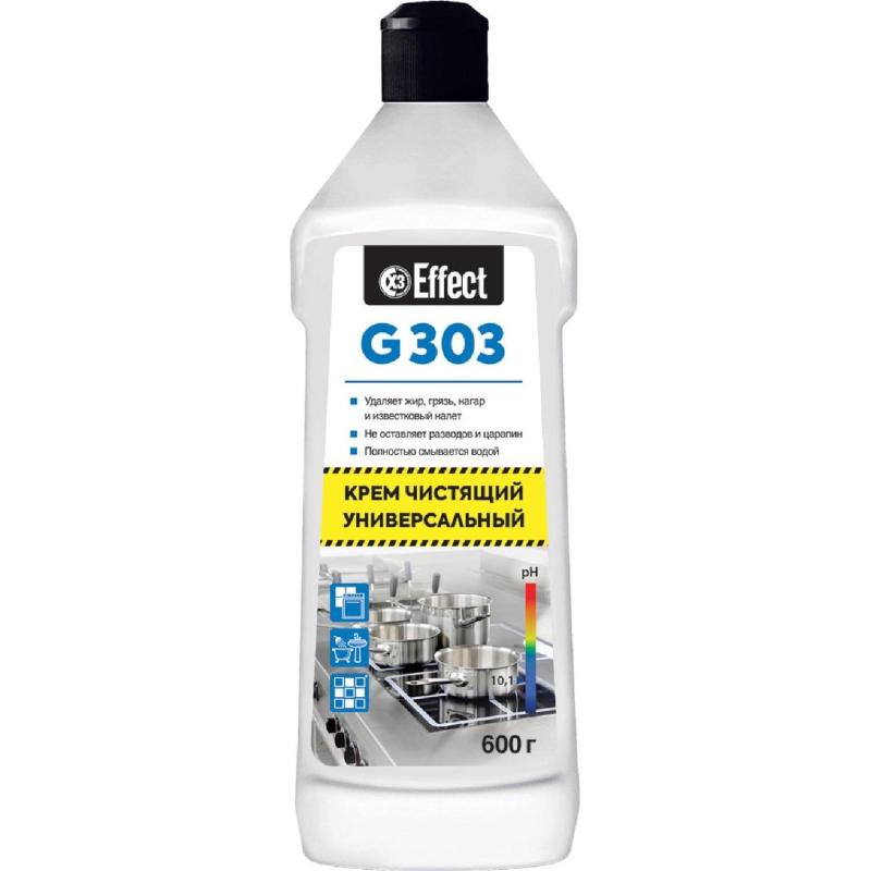 Чистящее средство для удаления жира и нагара Effect Gamma 303 600 г<br><br><b>Назначение:</b> Для чистки посуды, кухонных поверхностей и ванной комнаты. Можно использовать в гостиницах, ресторанах, офисах, на объектах пищевой промышленности, предприятиях общественного питания, в лечебно-профилактических, санаторно-курортных, детских дошкольных и других аналогичных учреждениях.<br><br><b>Способ применения:</b> Крем встряхнуть. С помощью влажной губки распределить по поверхности, почистить, смыть водой. Использовать крем только на остывших керамических, эмалированных, стальных и других влагоустойчивых твёрдых поверхностях. Перед чисткой электроприборов отключить их от источника тока.<br><br><b>Состав:</b> ≥ 30% мягкий абразивный наполнитель; < 5% щелочные добавки; < 5 %: АПАВ и НПАВ; < 5 %: консервант, краситель, ароматизирующая добавка.<br><br><b>Меры предосторожности:</b> При попадании в глаза может вызвать раздражение. При попадании средства в глаза осторожно промыть глаза водой в течение нескольких минут. При необходимости обратиться за медицинской помощью. Хранить в недоступном для детей месте, отдельно от пищевых продуктов. Не использовать абразивные губки. Средство замерзает, после размораживания сохраняет свои свойства. В бытовых условиях упаковку и, при необходимости, средство утилизировать как бытовой отход.<br><br><b>Срок годности:</b> 4 года.
