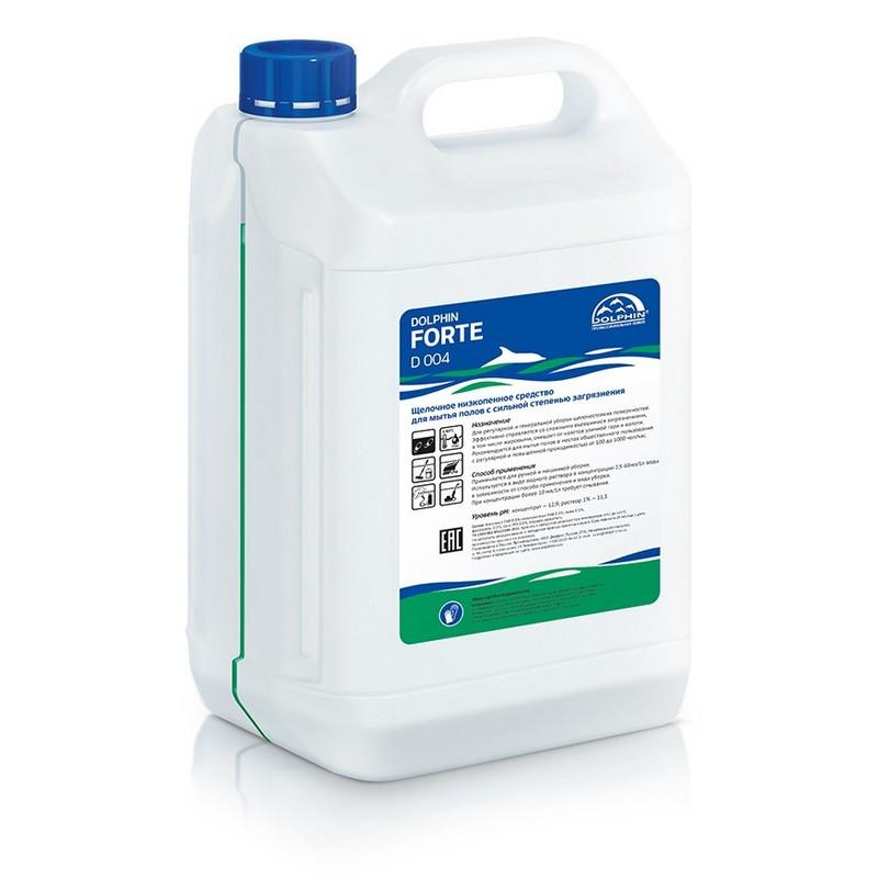 Щелочное низкопенное средство для генеральной и регулярной мойки полов с сильной степенью загрязнения Dolphin Forte (D 004) 5л<BR><b> Назначение: </b> щелочное низкопенное концентрированное средство для регулярной и генеральной уборки полов с сильной степенью загрязнения. Эффективно справляется со сложными въевшимися загрязнениями, в том числе жировыми, очищает от налетов уличной гари и копоти. Рекомендуется для мытья полов в местах общественного пользования с регулярной и повышенной проходимостью от 100 до 1000 чел./час, а также для очистки фасадов зданий. <BR><b> Способ применения: </b> Применяется для машинной уборки. Используется в виде водного раствора в концентрации 0,25–3 раствор (2,5–30 мл / 1 л воды) в зависимости от способа применения и степени загрязнения. При концентрации более 1 раствора (10 мл / 1 л воды) требует смывания. Для генеральной уборки применять методом замачивания на 10–15 мин. в концентрации 30 мл / 1 л воды = 3 раствор, с последующей обработкой роторной машиной или ручными щетками. После очистки требуется повторная промывка водой. Средство подходит для ручной мойки полов. <BR><b> Состав: </b> анионные ПАВ 0–5, неионогенные ПАВ 0–5, мыло 0–5, фосфонаты 0–5, соли НТА 0–5, отдушка, краситель.<BR><b> Срок годности: </b> 2 года <!--noindex-->с момента производства (при соблюдении условий хранения рекомендованных производителем)<!--/noindex-->