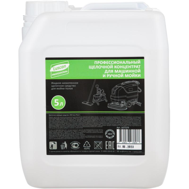 <b>Средство для машинной мойки полов с сильной степенью загрязнения Luscan Professional Caus Floor Wash 5 л (концентрат) </b> <br><br><b>Область применения: </b> Средство предназначено для регулярной и генеральной уборки полов с сильной степенью загрязнения, для мытья с использованием поломоечных машин и вручную. Рекомендуется для применения в санаторно-курортных учреждениях, на предприятиях сферы гостеприимства и других сфер обслуживания населения, а также на объектах пищевой промышленности, общественного питания, в ЛПУ, помещения торговых и деловых центров. Рекомендуется для мытья полов в местах общественного пользования с регулярной и повышенной проходимостью от 100 до 1000 чел/час. <br><b>Свойства: </b> Щелочное концентрированное низкопенное средство. Обладает высокой моющей и проникающей способностью, эффективно работает в воде любой жесткости и температуры. Удаляет стойкие и застарелые загрязнения, сложные комплексные атмосферные, почвенные, масложировые и другие загрязнения, дорожную грязь, антигололедные реагенты. Используется для очистки различных поверхностей из гранита, искусственного камня, бетонных и наливных полов, линолеума, ПВХ, резины, окрашенных водостойких поверхностей. При высыхании не оставляет разводов. <br><b>Способ применения: </b> Применяется в поломоечной или роторной машине, АВД или в МОП-системах. Рабочие растворы наносят методами орошения, протирания. Температурный режим мойки от 20°С до 60°С. Используется в виде водного раствора в концентрации от 0,5% до 10% (5–100 мл средства на 1 л воды) в зависимости от способа применения и степени загрязнения поверхности. Генеральная мойка сильнозагрязненных поверхностей (ручная и механизированная): Рабочий раствор 2%—10% концентрации (20–100 мл средства на 1 л воды). Нанести ручным или механизированным способом на загрязнённую поверхность, при необходимости собрать грязный раствор, промыть чистой водой и протереть насухо. В местах наибольшей концентрации загрязнения следует оставить раствор для воздействия на 2–15 минут, использовать механическое воздействие поломоечной либо роторной машины. Руководствоваться соответствующими инструкциями по эксплуатации поломоечных машин. Для применения через АВД использовать 10% раствор (1000 мл средства на 10л воды). Очистка слабо- и среднезагрязненных поверхностей (ручная и механизированная): Рабочий раствор 0,25%-1% концентрации (2,5-10 мл средства на 1 л воды). Нанести раствор ручным или механизированным способом на загрязнённую поверхность, протереть, не требует смывания. Ежедневная ручная уборка (МОП-система): 0,25%-1% раствор (25–100 мл средства на 10л воды) Уборка комбинированной машиной: 0,5%-1% раствор (50–100 мл средства на 10л воды) <br><b>Состав: </b> вода умягченная ≥30%, НПАВ 5-15%, гидроксид 5-15%, этоксилат жирного спирта C9-С11, комплексообразователи менее 5%, растворитель менее 5%, ингибитор корозии, отдушка. Плотность: 1.1 г/см³ Значение pH 1%-раствора: 9,5 (±0,5). <br><b>Меры предосторожности: </b> Беречь от детей! Не смешивать с кислотными и хлорсодержащими препаратами! Не использовать на алюминии, меди и др. цветных металлах! Использовать средства индивидуальной защиты. При попадании в глаза промыть большим количеством проточной воды. При необходимости обратиться к врачу. <br><b>Условия хранения: </b> Хранить в заводской упаковке, плотно закрытым, при температуре от +5°С до +30°С, вдали от ис