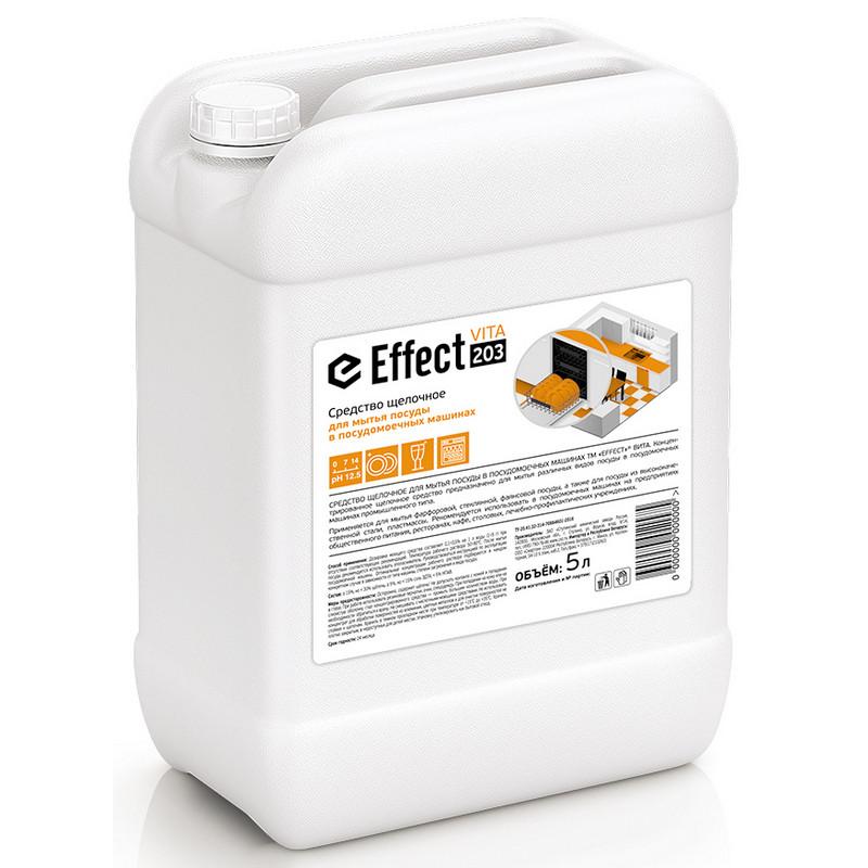 Средство для мытья посуды в посудомоечной машине Effect СХЗ Vita 203 5 л (концентрат)<br><br><b>Назначение:</b><br>Предназначено для мытья различных видов посуды в посудомоечных машинах промышленного типа. Применяется для мытья фарфоровой, стеклянной, фаянсовой посуды, а также для посуды из высококачественной стали, пластмассы.<br>Рекомендуется использовать в посудомоечных машинах на предприятиях общественного питания, ресторанах, кафе, столовых, лечебно-профилактических учреждениях.<br><br><b>Способ применения:</b><br>Дозировка моющего средства составляет 0,1%-0,5% на 1 л воды (1-5 г) при отсутствии соответствующих рекомендаций. Температура рабочего раствора 50°C-80°C. После мытья посуды рекомендуется использовать ополаскиватель. Руководствоваться инструкцией по эксплуатации посудомоечной машины. Оптимальные концентрации рабочего раствора подбираются в каждом конкретном случае в зависимости от типа машины, степени загрязнения и вида посуды.<br><br><b>Меры предосторожности:</b><br>Осторожно, содержит щёлочь! Не допускать контакта с кожей и попадания в глаза. При работе использовать резиновые перчатки, очки, спецодежду. При попадании на кожу или на слизистую оболочку глаз концентрированного средства — промыть большим количеством воды. При необходимости обратиться к врачу. Не смешивать с кислотными моющими средствами. Не использовать концентрат для обработки поверхностей из алюминия, цветных металлов и для очистки нестойких к щелочам поверхностей. Хранить плотно закрытым, в недоступных для детей местах. Упаковку утилизировать как бытовой отход.<br><br><b>Условия хранения:</b><br>Хранить в тёмном прохладном месте при температуре от −15°C до +35°C.<br><br><b>Состав:</b><br>≥15%, но <30% щёлочь, ≥ 5%, но <15% соль ЭДТА, <5% НПАВ.<br><br><b>Срок годности:</b><br>2 года.<br><br><br>Внешний вид продукта может отличаться от представленного на сайте в связи с переходом на другую упаковку