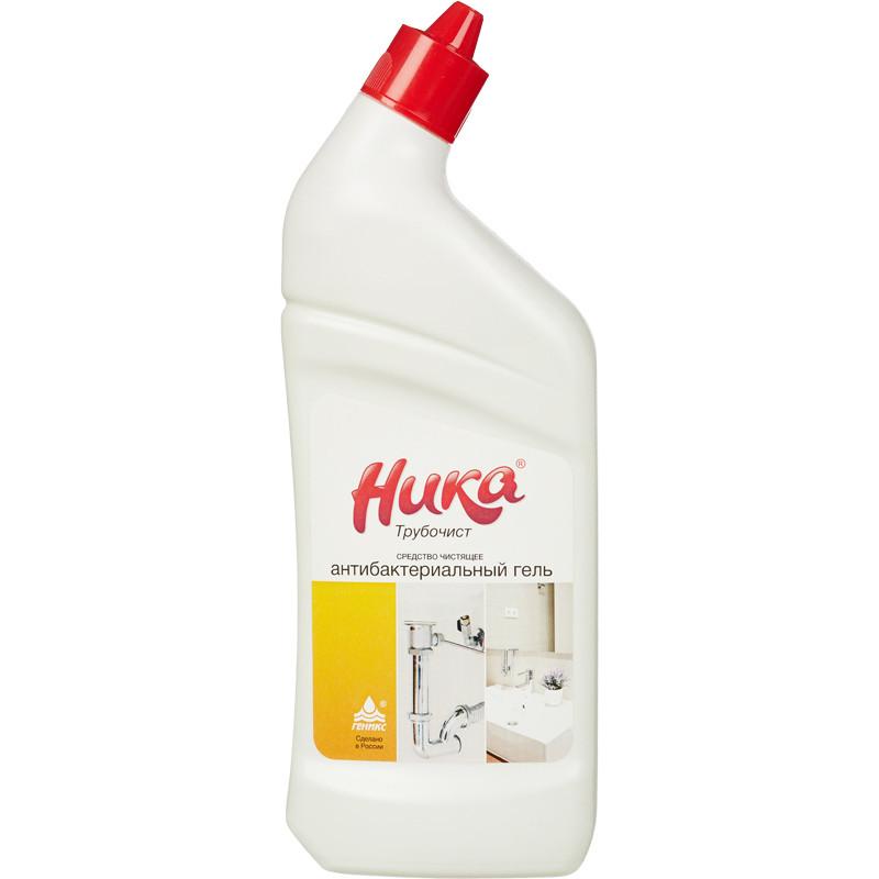Средство для прочистки труб Ника Трубочист гель 700 г<br><br>Назначение:</b> <br>Профессиональное средство позволяет устранить засоры в канализационной системе даже при наличии воды. Состав успешно справляется с любыми видами загрязнений и полностью восстанавливает пропускную способность. Средство способно растворять волосы, жиры, остатки пищи и другие загрязнения, имеет антибактериальный эффект, устраняет неприятный запах. Предназначено для использования на комбинатах общественного питания и других коммерческих объектах. Является безопасным для всех видов труб.<br><br>Способ применения:</b> <br>Залить в сливное отверстие раковины, ванны, унитаза 200-250 мл средства или прямо в стоячую воду. Оставить на 15-30 минут, затем промыть большим количеством воды. Для мытья санитарно-технического оборудования: нанести небольшое количество на обрабатываемую поверхность. Выдержать 10-15 минут. Промыть водой.<br><br>Меры предосторожности:</b> <br>Использовать перчатки. Беречь от детей. При попадании на кожу промыть большим количеством воды. При необходимости обратиться за помощью к врачу.<br><br>Состав:</b> <br>Гипохлорид натрия < 15%, АПАВ < 5%, НПАВ < 5%, щёлочь < 5%.<br><br>Условия хранения</b> <br>Хранить в сухом прохладном месте. Не допускать попадания прямых солнечных лучей. Следить за герметичностью упаковки.<br><br>Срок годности:</b> <br>24 месяца.<br>: