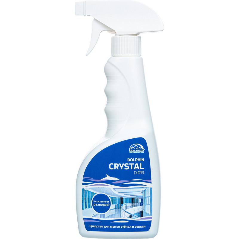 Средство для мытья стекол и зеркал Dolphin Crystal (D 019) 500 мл (готовое к применению средство).<BR>Назначение: для удаления уличных и органических загрязнений — пыли, грязи, жировых пятен, следов от пальцев.<BR>Область применения: рекомендуется для ежедневного и периодического мытья окон, витрин, стеклянных дверей и перегородок, зеркал, глянцевых поверхностей.<BR>Свойства: средство быстро сохнет, не оставляя разводов и придает блеск поверхности.<BR>Способ применения: наносится на поверхность салфеткой или распылением, растирается протирочным материалом насухо. Не требует смывания. Для мытья больших поверхностей использовать сгон. Применяется для ручной уборки.<BR>Состав: неионогенные ПАВ 0–5%, соли НТА 0–5%, отдушка, красители, консервант.<BR>ГОСТ/ТУ: ТУ <nobr>2383-002-8552</nobr><nobr>2504–2011</nobr>.<BR>Плотность: 1,00 г/куб.см. при 20°С.<BR>Значение pH 1\<nobr>0025-раствора</nobr>: 7,5.<BR>Меры предосторожности (подробная информация см. паспорт безопасности): использовать перчатки. При попадании на кожу или в глаза промыть большим количеством воды. При необходимости обратиться к врачу.<BR>Условия хранения: хранить в заводской упаковке при температуре 5–25°С. Не допускать замораживания и попадания прямых солнечных лучей. Хранить в местах недоступных для детей, вдали от пищевых продуктов.<BR>Срок годности: 24 месяца (с даты производства).