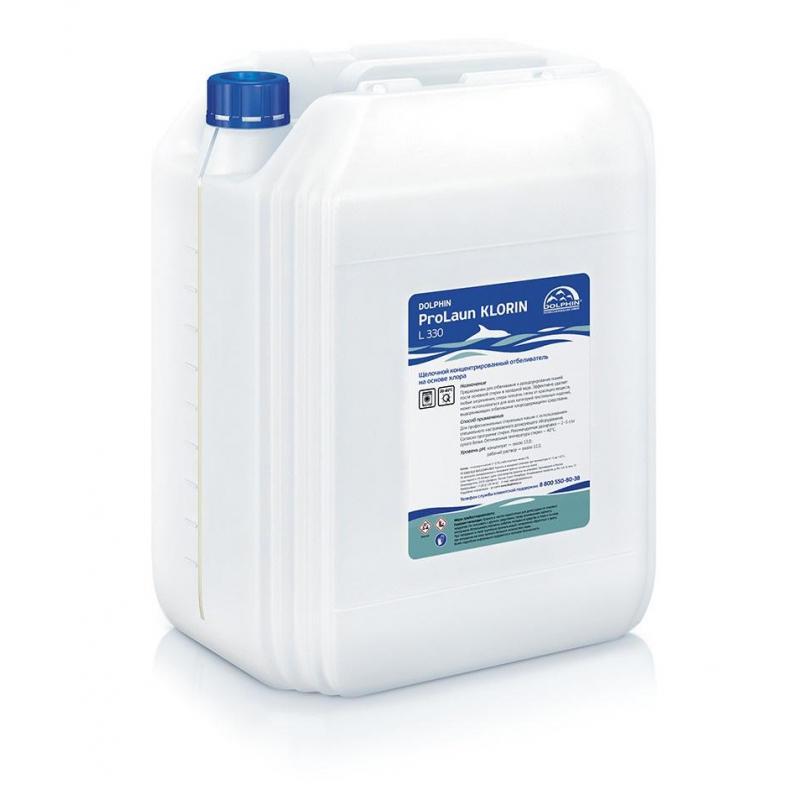 Отбеливатель низкотемпературный кислородный Dolphin ProLaun Klorin (L330-20) 20 л (концентрат)<br><br><b>Назначение:</b><br>Предназначен для отбеливания и дезодорирования тканей после основной стирки в холодной воде. Эффективно удаляет любые загрязнения, следы плесени, пятна от красящих веществ, может использоваться для всех категорий текстильных изделий, выдерживающих отбеливание хлорсодержащими средствами. Для профессиональных стиральных машин с использованием специального настраиваемого дозирующего оборудования.<br><br><b>Способ применения:</b><br>Для профессиональных стиральных машин с использованием специального настраиваемого дозирующего оборудования. Согласно программе стирки.<br>Рекомендуемый ввод 2-5 кг сухого белья при температуре 40°C.<br><br>Показатель pH 1%-го раствора: 12.<br><br><b>Меры предосторожности:</b><br>Содержит гипохлорит. Хранить в местах недоступных для детей, вдали от пищевых продуктов. Не смешивать с другими средствами, перед применением прочесть инструкцию. Использовать перчатки, избегать попадания средства в глаза и на кожу. При попадании в глаза тщательно промыть водой, немедленно обратиться к врачу, при попадании на кожу промыть большим количеством воды. Более подробная информация содержится в паспорте безопасности.<br><br><b>Условия хранения:</b><br>Хранить в заводской упаковке при температуре от +5 до + 35°C. Не допускать замораживания и попадания прямых солнечных лучей.<br><br><b>Состав:</b><br>Вода более 30%, гипохлорит 5-15%, стабилизаторы менее 5%.<br><br><b>Срок годности:</b><br>24 месяца с момента производства (при соблюдении условий хранения рекомендованных производителем).