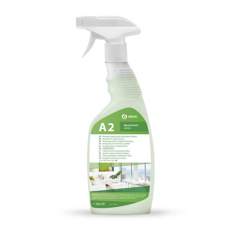 <p>Профессиональное универсальное средство для ежедневной уборки Grass А2 600 мл<br><b>Назначение:</b> <br>Универсальное моющее средство. Может применяться для очистки кожи, изделий из ткани, телефонных аппаратов, корпусной мебели. Не оставляет царапин, обеспечивает чистоту без разводов и потеков. Экономично в применении.<br><b>Способ применения:</b> <br>Распылите средство на губку или салфетку и очистите поверхность. Протрите влажной салфеткой и отполируйте.<br><b>Меры предосторожности:</b> <br>При попадании в глаза промыть водой. Беречь от детей.<br><b>Условиях хранения:</b> <br>Хранить при температуре от 5 °С до 35 °С. Избегать попадания прямых солнечных лучей.<br><b>Состав:</b> <br>Очищенная вода, неиногенные ПАВ, соль ЭДТА, органический растворитель, ароматизирующий компонент, краситель.<br><b>Срок хранения:</b><br>24 месяца со дня изготовления в оригинальной не вскрытой упаковке.</p>