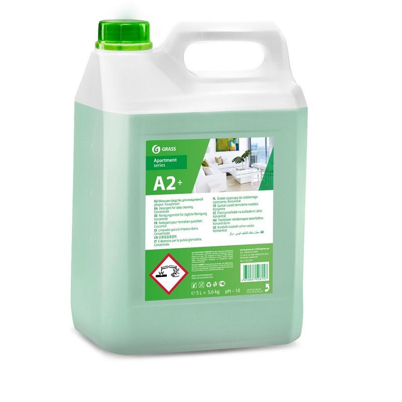 <p>Профессиональное универсальное средство для ежедневной уборки Grass А2 5 л<br><b>Назначение:</b><br>Концентрированное универсальное моющее средство. Может применяться для очистки кожи, изделий из ткани, телефонных аппаратов, корпусной мебели. Не оставляет царапин, обеспечивает чистоту без разводов и потеков. Экономично в применении . <br><b>Способ применения:</b> <br>Концентрат разводится водой 1:10. Готовый раствор распылите на губку или салфетку и очистите поверхность. Протереть влажной салфеткой и отполировать поверхность.<br><b>Меры предосторожности:</b> <br>При попадании в глаза промыть водой. Беречь от детей.<br><b>Условиях хранения:</b> <br>Хранить при температуре от 5 °С до 35 °С. Избегать попадания прямых солнечных лучей.<br><b>Состав:</b> <br>очищенная вода, неиногенные ПАВ, соль ЭДТА, органический растворитель, ароматизирующий компонент, краситель.<br><b>Срок хранения:</b> <br>24 месяца со дня изготовления в оригинальной не вскрытой упаковке.</p>