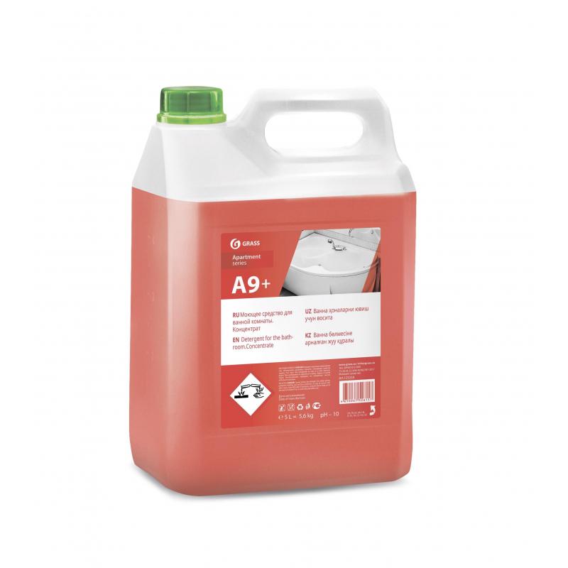 <b>Моющее средство для деликатной очистки Grass Apartment Series A9+ 6 кг (концентрат).</b><BR><b>Назначение:</b> концентрированное кислотное моющее средство для ежедневной уборки, чистки и ухода за акриловыми и эмалированными ваннами, душевыми кабинами, раковинами, кранами, кафельной плиткой, унитазами, писсуарами. Средство удаляет известковый налет, ржавчину.<BR>Можно использовать для гостиниц, ресторанов, офисов, на объектах пищевой промышленности, предприятиях общественного питания, в <nobr>медицинско-профилактических</nobr>, <nobr>санаторно-курортных</nobr>, детских, дошкольных и других аналогичных учреждениях Гелеобразная структура моющего средства обеспечивает экономичный расход.<BR><b>Дозировка:</b> концентрат разводится 1:10.<BR><b>Способ применения:</b> готовый раствор распылить на губку или салфетку и очистить. Потереть влажной салфеткой и отполировать поверхность.<BR><b>Состав:</b> ≥30%: вода очищенная, лимонная кислота; ≥5, но <15% неионогенные ПАВ; <5%: акриловый сополимер, ароматизирующая добавка, краситель.<BR><b>Срок годности:</b> 24 месяца <!--noindex-->с момента производства (при соблюдении условий хранения рекомендованных производителем).<!--/noindex--><BR>Значение pH 1-% раствора — 2.