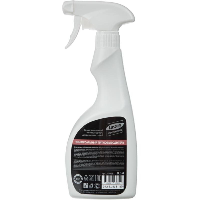 <b>Энзимный пятновыводитель для обработки текстильных и твердых поверхностей Luscan Professional Oxiclean Power 500 мл</b> <br><br><b>Область применения: </b> Средство предназначено для удаления пятен на текстильных (кроме натуральных шерсти и шелка) и на твердых поверхностях. Рекомендуется для применения в профессиональном клининге, на предприятиях сферы гостеприимства, в санаторно-курортных учреждениях, в детских дошкольных и школьных учреждениях, помещения торговых и деловых центров, в химчистке. <br><b>Свойства: </b> Нейтральный концентрированный готовый к применению препарат с содержанием энзимов. Эффективен в борьбе как со свежими, так и со стойкими пятнами различного происхождения. Не повреждает структуру ткани, поверхности.<br><b>Способ применения: </b> Встряхнуть бутылку! Проверить стойкость красителя ткани на незаметном участке! Для удаления пятен: нанести средство на пятно, через 3-5 минут удалить остатки влажной салфеткой, промыть водой, высушить поверхность. Для чистки кожаной обивки: нанести средство на чистую салфетку, растереть по обивке, излишки удалить чистой влажной салфеткой и вытереть насухо. Текстиль (без стирки): смочить пятно водой, нанести (распылением) средство, выдержать 5-10 минут и аккуратно потереть пятно мягкой мокрой щеткой либо губкой до его полного исчезновения. Затем очистить место обработки влажной губкой либо салфеткой до исчезновения пены. Подсушить ткань салфеткой, либо вафельным полотном. Текстиль (со стиркой): смочить пятно водой, нанести (распылением) средство, выдержать 5 минут и аккуратно потереть пятно мягкой мокрой щеткой до максимально возможного исчезновения. Затем стирать обычным способом. Для стирки рабочей одежды: добавить средство в емкость с водой из расчёта 2% (20 мл средства на 1 л воды), при сильных загрязнениях — 15% (150 мл средства на 1 л воды), замочить одежду на 30 минут, стирать обычным способом. <br><b>Состав: </b>вода умягченная ≥30%, НПАВ 15-30%, этоксилированный спирт 4ЕО 5-15%, этоксилированный спирт 7ЕО 5-15%, комплексоны менее 5%, растворители менее 5%, энзимы менее 5%, консервант менее 5%. Плотность: 1.005 г/см³ Значение pH 1%-раствора: 8,5 (±0,5). <br><b>Меры предостороности: </b>Беречь от детей! Не смешивать с кислотными и хлорсодержащими препаратами! Не использовать на натуральных тканях из шелка! Использовать средства индивидуальной защиты. При попадании в глаза промыть большим количеством проточной воды. При необходимости обратиться к врачу. <br><b>Условия хранения: </b> Хранить в заводской упаковке, плотно закрытым, при температуре от +5°С до +30°С, вдали от источников тепла, избегая попадания прямых солнечных лучей, отдельно от пищевых продуктов, в местах недоступных для детей и животных. <br><b>Срок годности: </b> 2 года с момента производства (при соблюдении условий хранения, рекомендованных производителем).<br><b>объём: </b> 500 мл.