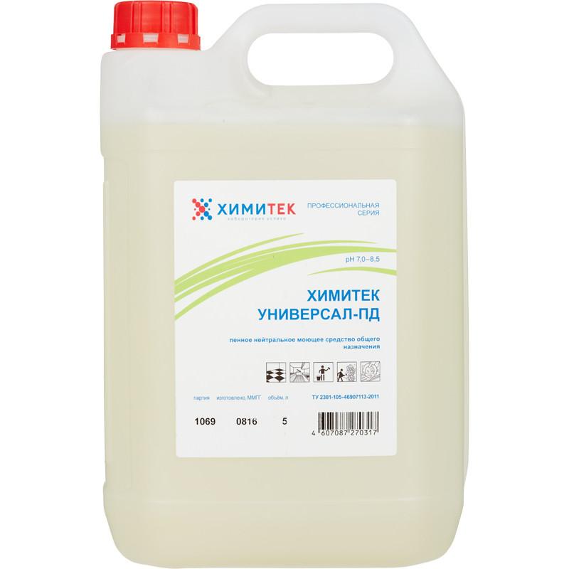 <p>Концентрированное жидкое пенное нейтральное моющее средство общего назначения Химитек Универсал-ПД<br><b>Назначение:</b> <br>Предназначено для мытья любых поверхностей, в том числе деликатных: мраморных, деревянных, окрашенных. Удаляет бытовые, уличные, пищевые и другие загрязнения. Применяется на предприятиях различного профиля, в том числе на объектах пищевой промышленности, предприятиях общественного питания, в ЛПУ, санаторно-курортных, детских, дошкольных, школьных и других аналогичных учреждениях, в быту. Рекомендуется для мытья пищевого оборудования, посуды, тары. Высокоэффективно при использовании метода пенной обработки. Разрешено для применения в реставрационной практике и для очистки произведений декоративно-прикладного искусства.<br><b>Способ применения: </b> <br>Перед использованием средство рекомендуется перемешать. Средство используют в виде 0,25%—2% рабочих растворов, которые готовят в емкостях из любого материала добавлением концентрата в воду. Ориентировочный расход раствора — 40–100 г на 1 м². Рабочие растворы наносят методами орошения, протирания, замачивания. Температурный режим — от 20°C до 85°C.<br>Для пенной мойки с использованием пенокомплекта рекомендуются 20%—30% растворы предварительного разведения.<br>Срок годности рабочих растворов — не менее 7 суток.<br><b>Меры предосторожности: </b><br>Избегать попадания средства в глаза и на кожу. При работе со средством рекомендуется пользоваться резиновыми перчатками. Хранить в недоступном для детей месте.<br>В случае попадания средства в глаза или на кожные покровы рекомендуется промывание проточной водой. При необходимости обратиться к врачу.<br><b>Условия хранения: </b> <br>Хранить в закрытом виде при температуре от 0°C до +40°C.<br><b>Состав: </b> <br>Вода ≥30%, анионные ПАВ ≥5%, но <15%, неионогенные ПАВ <5%, комплексообразователь <5%, хлористый натрий <5%, d-Лимонен <5%, консервант <5%.<br><b>Срок годности: </b> <br>2 года при соблюдении условий хранения в невскрытой упаковке производителя.</p>