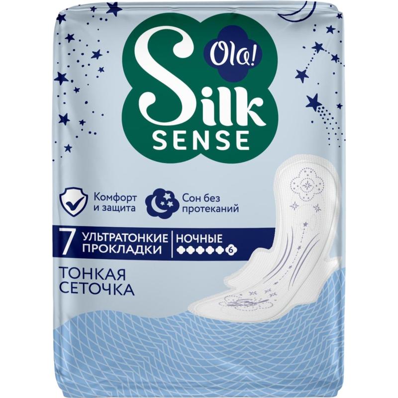 Прокладки женские гигиенические Ola Ultra Night (7 штук в упаковке)<br><br>Ультратонкие прокладки предназначены для обильных выделений и обеспечивают бережную защиту от протеканий каждый день. Их толщина всего 2 мм, что делает их незаметными под любой одеждой. Суперабсорбент в составе ядра прокладки быстро превращает жидкость в гель, удерживая её внутри и предотвращая протекания и появление неприятного запаха. Тонкая сеточка на поверхности не вызывает раздражений и мгновенно пропускает жидкость. Широкие тройные крылышки обеспечивают надёжное крепление прокладки к белью. Длина прокладки 320 мм. Ночные, без отдушки, в упаковке 7 шт.