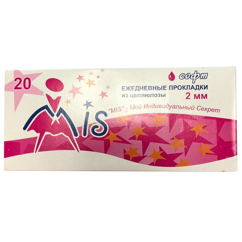 Прокладки женские ежедневные Mis (20 штук в упаковке)<br><br>Прокладки женские ежедневные из целлюлозы. Изделия из распушённой целлюлозы быстро распределяют жидкость, что способствует ощущению комфорта. Обеспечат до 100% защиты от протеканий. Верхний слой мягкий нетканый материал софт. <br>Толщина прокладки: 2 мм.