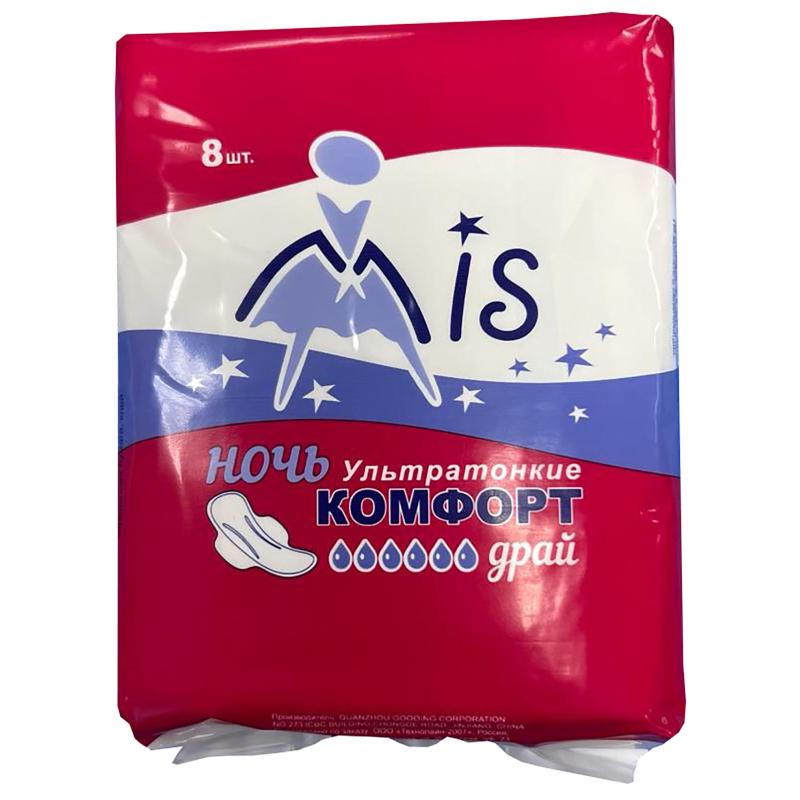 Прокладки женские гигиенические Mis комфорт драй (8 штук в упаковке)<br><br>Абсолютно новый продукт, который производится на современном оборудовании из экологически чистого сырья. Высокая впитываемость достигается за счёт современного сырья «аэрлайд», который при всех своих высоких показателях достаточно лёгкий и комфортен для применения. Такая прокладка прекрасно удерживает запахи и имеет дополнительную защиту от протекания.<br><br>Каждая прокладка имеет: индивидуальную упаковку с липкой лентой для удобства утилизации, крылышки всегда софт, не зависимо от покрытия, что повышает комфорт при носке, усиленный впитывающий слой и дополнительные барьеры от протеканий. Длина прокладки: 285 мм. Толщина прокладки: 3 мм.