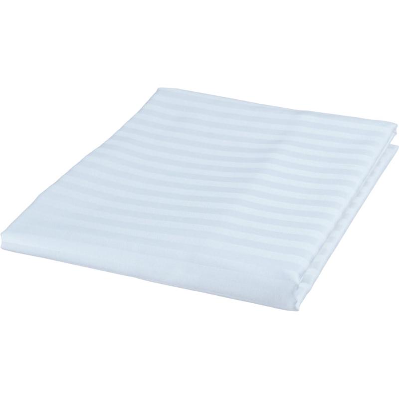 Простыня 150×220 см страйп-сатин белая. Подойдет как для использования в отелях, гостиницах, санаториях, так и в домашнем обиходе.<br><br>Страйп-сатин — это ткань с классическим жаккардовым плетением нитей, образующим чередование полос. Полосы шириной 1 см. Страйп-сатин считается изысканным, благородным материалом. В ее состав входит 100% хлопок, что обеспечивает комфорт, мягкость и гипоаллергенность материала. Одним из важных свойств ткани является ее способность сохранять форму. Даже при многократных стирках, она не вытянется и не потеряет характерный шелковистый блеск.<br><br>Состав: 100% хлопок. Плотность ткани: 140 г/кв.м.<br><br>Рекомендации по уходу: изделия из страйп-сатина выдерживают до 300 стирок при соблюдении температурного режима в 40-60С и небольшой скорости отжима — до 500 оборотов в минуту. Недопустимо применение сильнодействующих порошков с содержанием хлора и сульфатов, лучше подбирать варианты для деликатной стирки.<br><br>Размер: 150×220 см.<br><br>Внимание! Перед первым использованием обязательна стирка!