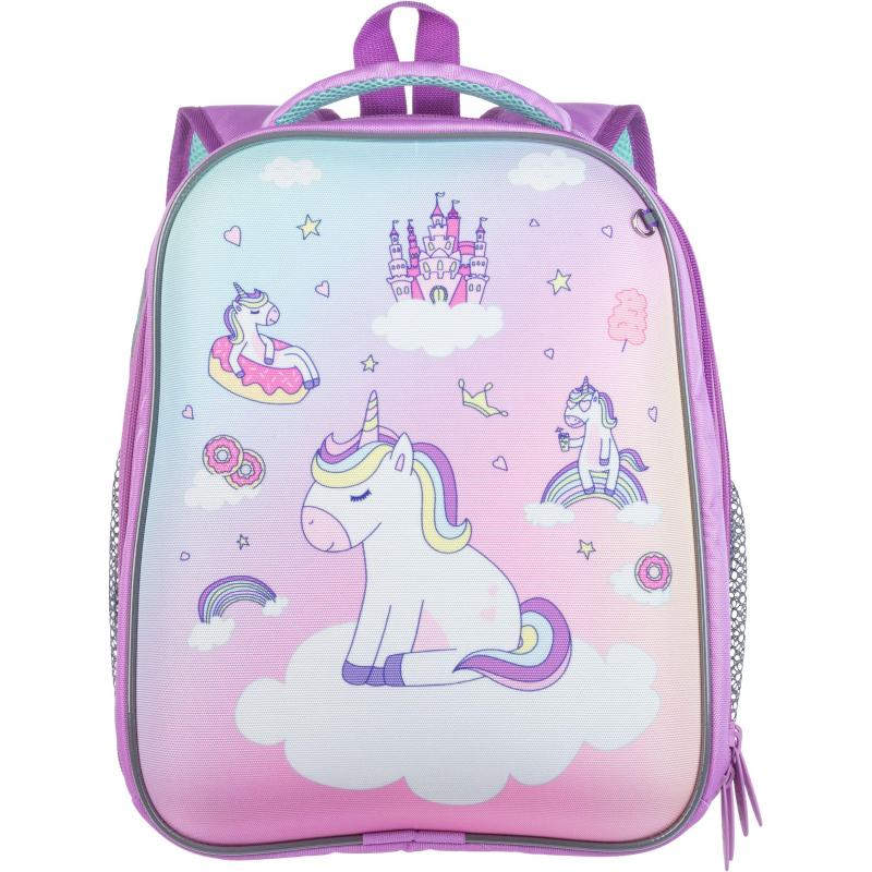 Этот облегченный вариант ранца отлично подойдет девочек — учениц младших классов, так как вес изделия составляет всего 700 грамм. Дизайн ранца выполнен в сиреневом цвете с изображением «воздушного единорога». Эргономичная компактная форма с жестким каркасом и удобной, мягкой ортопедической спинкой обеспечивают комфортное распределение нагрузки на спину. Ранец имеет два отделения на молнии. Внутри основного отделения — гибкая перегородка, предназначенная для удобного хранения книг и тетрадей. Размер: 320×170×370 миллиметров. Также на ранце по бокам расположены сетчатые карманы для мелких принадлежностей. Широкие удобные лямки из воздухообменного сетчатого материала. Плотное, устойчивое дно на ножках. Светоотражающие элементы для дополнительной безопасности на лицевой стороне, боковых частях ранца, а также на лямках. Основной материал — полиэстер. Цвет подкладки рюкзака может отличаться от варианта, представленного на фото. Подходит на рост от 122 до 146 сантиметров.