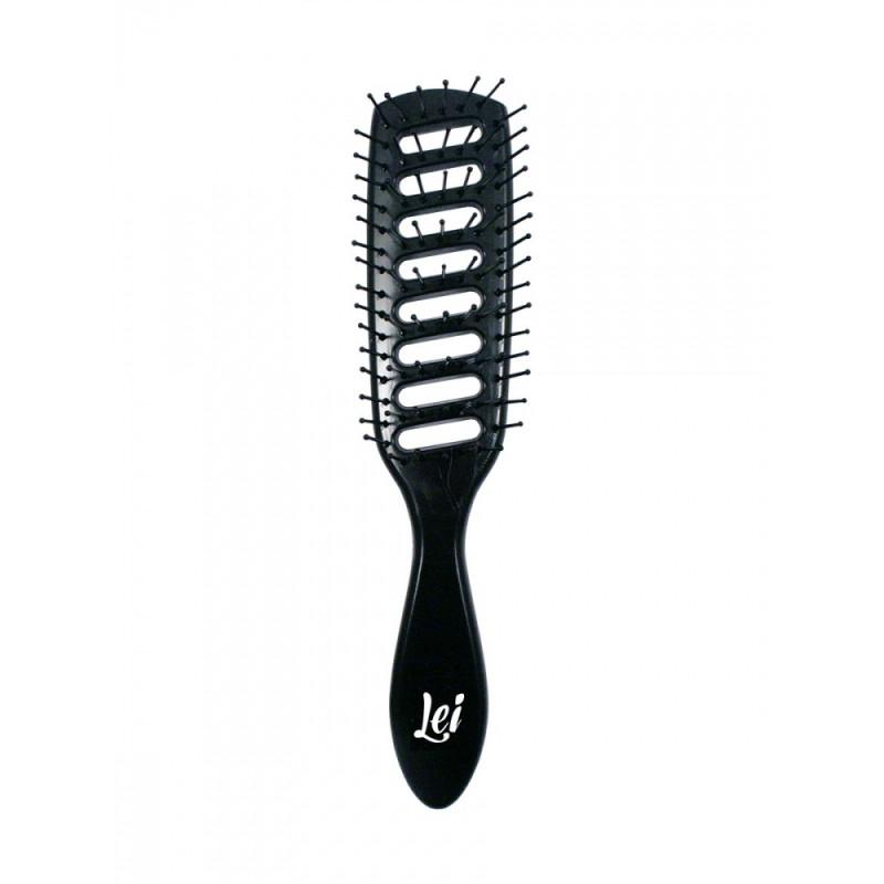 Расчёска Lei 110 205 мм<br><br>Расчёска для укладки и сушки Lei из пластика. Продуваемая конструкция идеальна для сушки феном: поток горячего воздуха проходит сквозь отверстия, не нагревая зубцы. Расчёска имеет средние размеры, потому подходит для укладки причёсок на коротких стрижках — каре или боб. Широко расставленные зубья помогают распутать густые, вьющиеся или влажные пряди.<br>Количество рядов: 7.<br>Размер: 20.5×4.5×3 см.