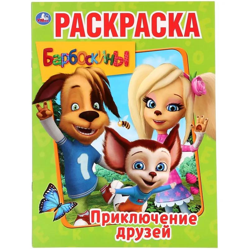 Раскраска Умка Барбоскины Приключения друзей А4 16 страниц<br><br>Раскраска формата А4 включает 16 страниц с крупными иллюстрациями героев мультсериала «Барбоскины». Чёткие контуры рисунков и короткие описания персонажей делают процесс раскрашивания удобным и познавательным. Сюжеты с участием друзей позволяют ребёнку увлекательно проводить время и развивать воображение.<br><br>Издание выполнено из офсетной бумаги и имеет мягкую обложку. Размер составляет 214×290 мм. Страницы подходят для раскрашивания красками, карандашами, фломастерами, цветными ручками и маркерами.<br><br>Раскраска помогает развивать мелкую моторику, внимание, усидчивость, сенсорику и творческое мышление. Она рекомендована детям от 3 лет.