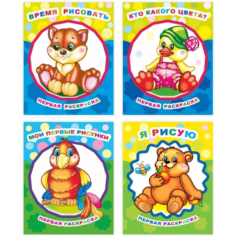 Раскраска Леда 260×200 8 страниц (4 штуки в упаковке)<br><br>Набор раскрасок для малышей с крупным контуром предназначен для детей от 3 лет. Каждая раскраска содержит 8 страниц с изображениями животных и предметов, выполненными с толстыми линиями, что упрощает процесс раскрашивания и делает его удобным для самых маленьких.<br><br>Раскраски выполнены в мягкой обложке. Страницы можно раскрашивать карандашами, красками, фломастерами или использовать пластилин. Формат нестандартный, размер каждой раскраски — 260×200 мм. В единице продажи представлено 4 штуки. Такой набор поможет ребёнку развивать воображение, мелкую моторику и аккуратность.