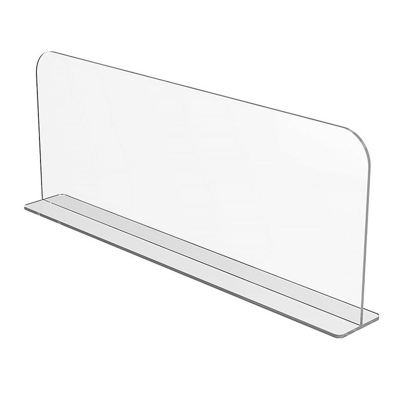 <p>Универсальный разделитель высотой 150 мм с нижним Т-профилем. Для установки на полку без крепежных аксессуаров. Конструкция обеспечивает простоту применения — разделитель прижимается к полке товаром. Материал: прозрачный ударопрочный пластик. Ширина основания — 50 мм. Длина — 380 мм.</br></br>В упаковке 20 штук.</p>