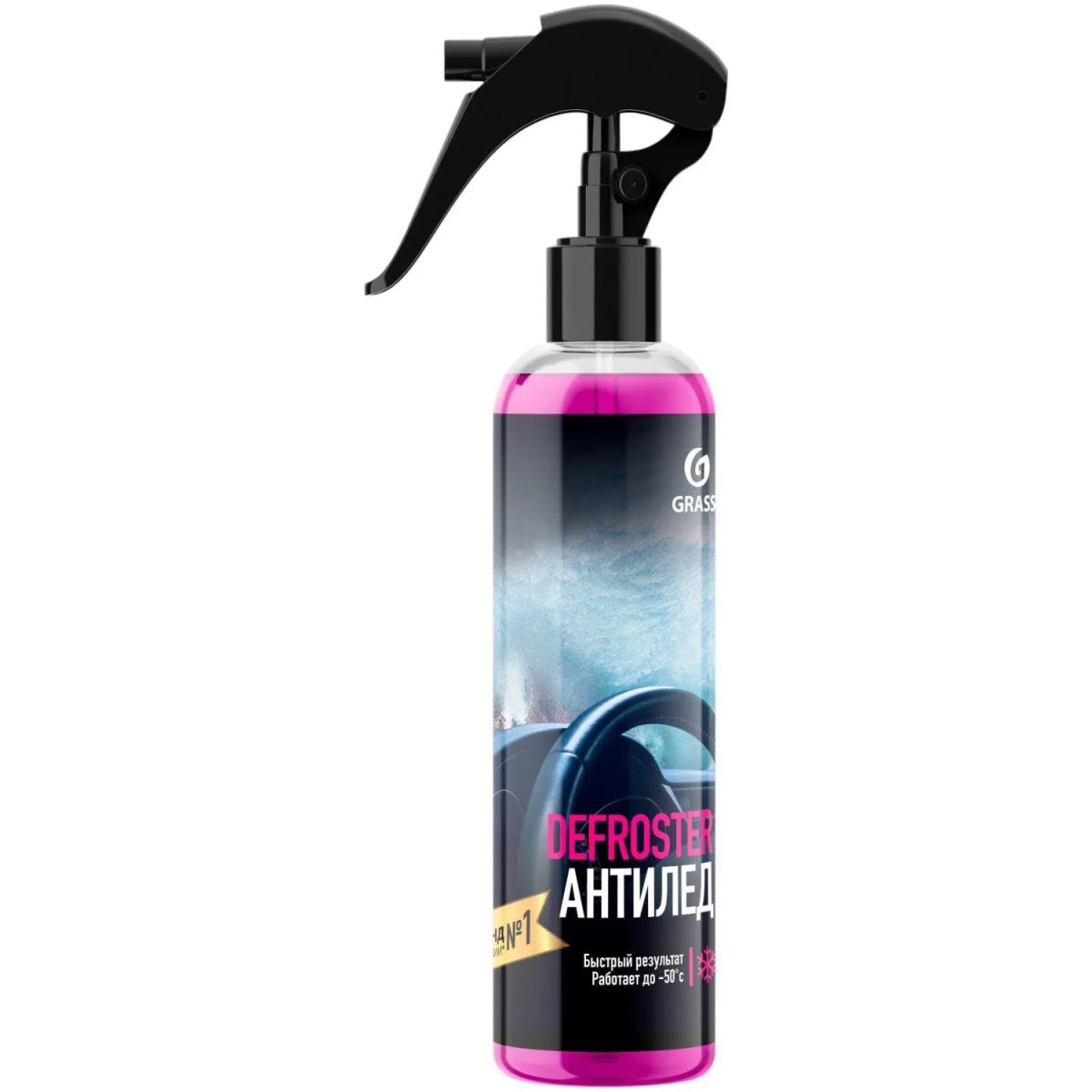 Размораживатель замков и стёкол Grass Defroster спрей 250 мл (151250)<br><br>Размораживатель стёкол и замков. Удаляет снег и лёд со стёкол, фар, зеркал и дворников автомобиля. Размораживает дверные замки и уплотнители. Безвреден для лакокрасочного покрытия автомобиля, а также хромированных, пластиковых и резиновых поверхностей. Работает до −50 °С.<br><br><b>Состав</b> <br>изопропиловый спирт, моноэтиленгликоль, ароматизатор, краситель.<br><br><b>Меры предосторожности</b> <br>При попадании на кожу или слизистую оболочку промыть большим количеством воды. Не курить во время использования. Не вдыхать. Беречь от детей.<br><br><b>Способ применения</b> <br>Распылите средство на поверхность, подождите 1-2 минуты. Снимите остатки льда со стекла скребком или щёткой, при необходимости протрите стекло сухой тканью. Для того чтобы предотвратить обледенение — распылите средство на стекло заранее и не вытирайте. Чтобы разморозить замки хорошо впрысните средство в личинку замка и подождите 1-2 минуты.