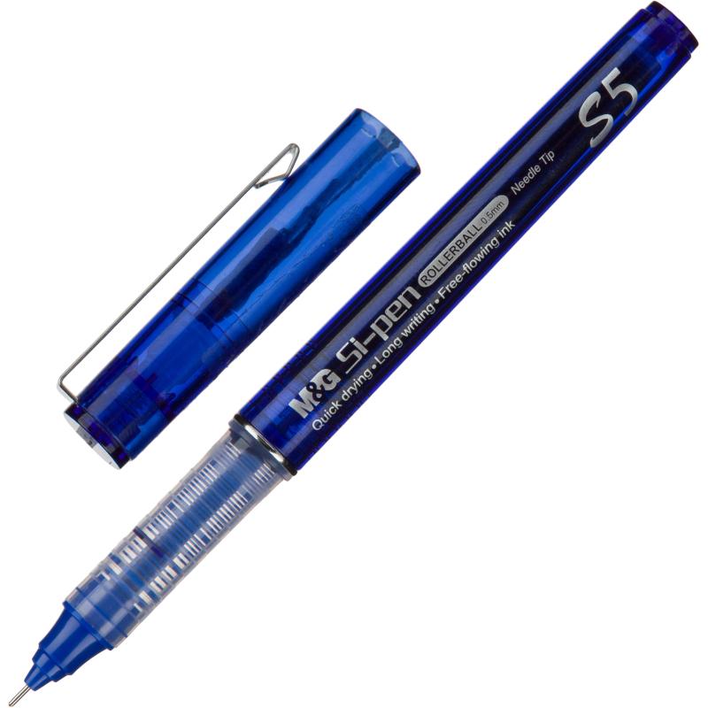 <p><nobr>Ручка-роллер</nobr> M&G S5 идеально подходит для письма, чертежей и точной графики.<br />Цвет корпуса ручки соответствует цвету чернил. Четкие линии чернил не размазываются при нечаянном соприкосновении с рукой. Такой ручкой можно писать без дополнительных усилий даже при легком касании бумаги. Удобный металлический клип на колпачке позволяет фиксировать ручку на ежедневниках, блокнотах и карманах одежды. <nobr>Ручка-роллер</nobr> с игольчатым наконечником обеспечивает необыкновенно мягкое и четкое письмо на любой бумаге. Удобно лежит в руке и не вызывает дискомфорта даже при длительном использовании. Толщина линии — 0.4 мм. Диаметр шарика — 0.5 мм. Чернила синего цвета. Ручка имеет длинную линию письма — 1500 м.</p>