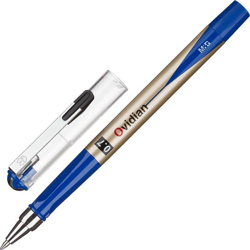 <p>Ручка гелевая неавтоматическая M&G Ovidian изготовлена из прочного пластика и имеет металлический клип. Сменный стержень длиной 128 мм снабжен стандартным наконечником и заправлен высококачественными гелевыми чернилами синего цвета. Диаметр пишущего узла 0,7 мм создает тонкую линию письма, равную 0,5 мм.</p>