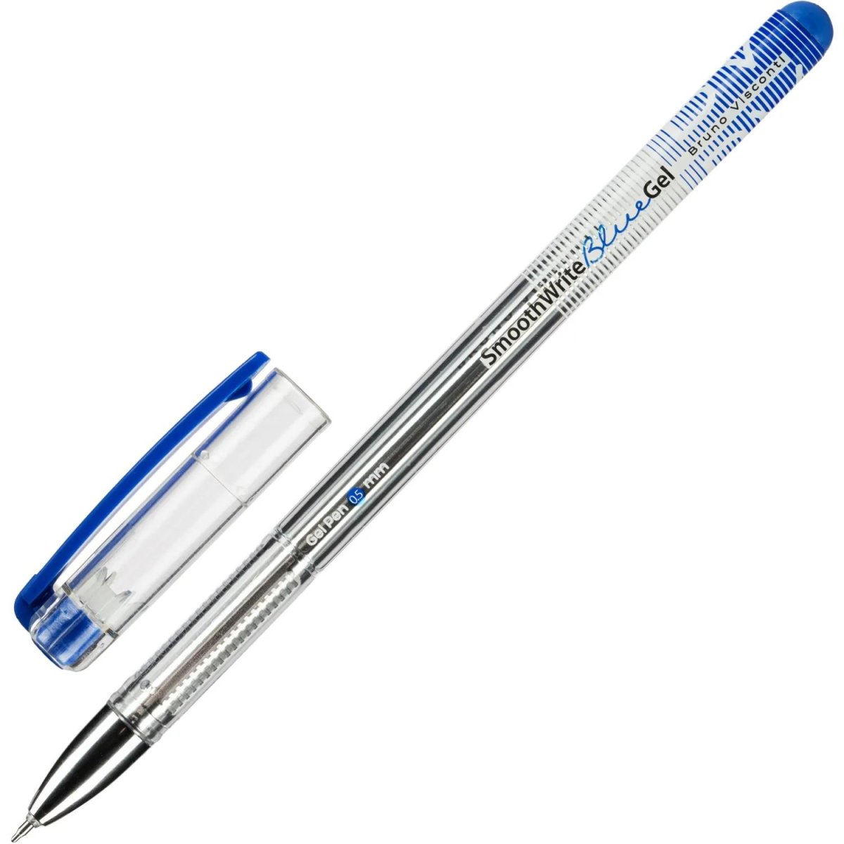 Ручка гелевая неавтоматическая Bruno Visconti SmoothWrite предназначена для плавного и аккуратного письма. Оснащена игольчатым наконечником диаметром 0.5 мм, обеспечивающим тонкую и чёткую линию письма толщиной 0.4 мм. Чернила синего цвета произведены японской компанией Mikuni и отличаются равномерным распределением без пропусков. Используемые чернила являются быстросохнущими, в следствии чего ручка даже при интенсивном нажиме не мажет.<br><br>Корпус выполнен из прозрачного пластика круглой формы. Ручка закрывается колпачком с пластиковым клипом, что позволяет удобно крепить её к блокноту или карману. Конструкция неавтоматическая, но стержень можно заменить, продлевая срок службы изделия.<br><br>Производство — Китай. Длина стержня 129 мм, размер ручки 154×9 мм.<br><br>Расходные материалы для данной ручки не представлены в ассортименте производителя и в ассортименте компании Комус.