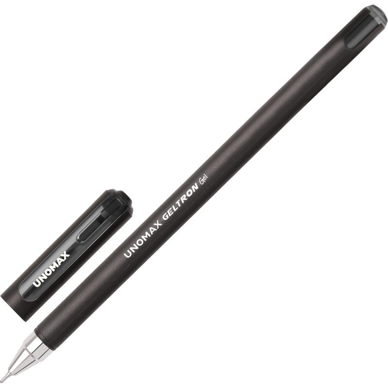 Гелевая ручка Unomax Geltron в круглом пластиковом черном матовом корпусе премиум класса. Хромированный наконечник. Увеличенный стержень с чернилами черного цвета позволяет писать в два раза дольше. Ручка обеспечивает легкое и мягкое письмо, яркие и насыщенные линии толщиной 0.3 мм (диаметр шарика 0.5 мм). Форма наконечника: игольчатая. За счет особого расположения шарика пишущего узла ручка идеально подходит как для правшей, так и для левшей. Ручка, созданная по революционным технологиям с использованием материалов высшего качества, обеспечивает мягкое и качественное письмо за счет использования гелевых чернил Quick Dry Gel Ink быстро высыхающих на бумаге. Ручка обладает возможностью смены стержня.