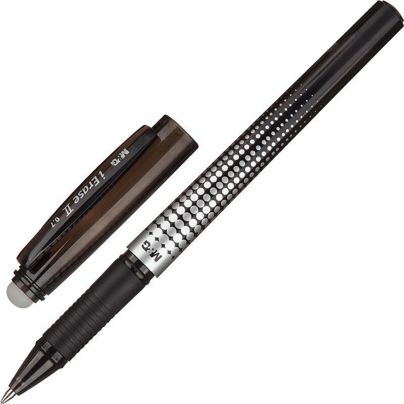 <p>Ручка гелевая M&G iErase II обладает уникальными обесцвечивающимися <nobr>термо-чернилами</nobr>. Для удаления надписи необходимо потереть ее специальным ластиком, встроенным в колпачок ручки. При письме и стирании ручка не повреждает структуру бумаги, делая исправления незаметными. Ручка не рекомендована для использования в деловых документах. Рифленая резиновая манжетка обеспечивает удобный захват ручки и комфорт во время письма. Диаметр шарика — 0,7 мм. Толщина линии письма — 0,5 мм. Цвет чернил — черный.</p>