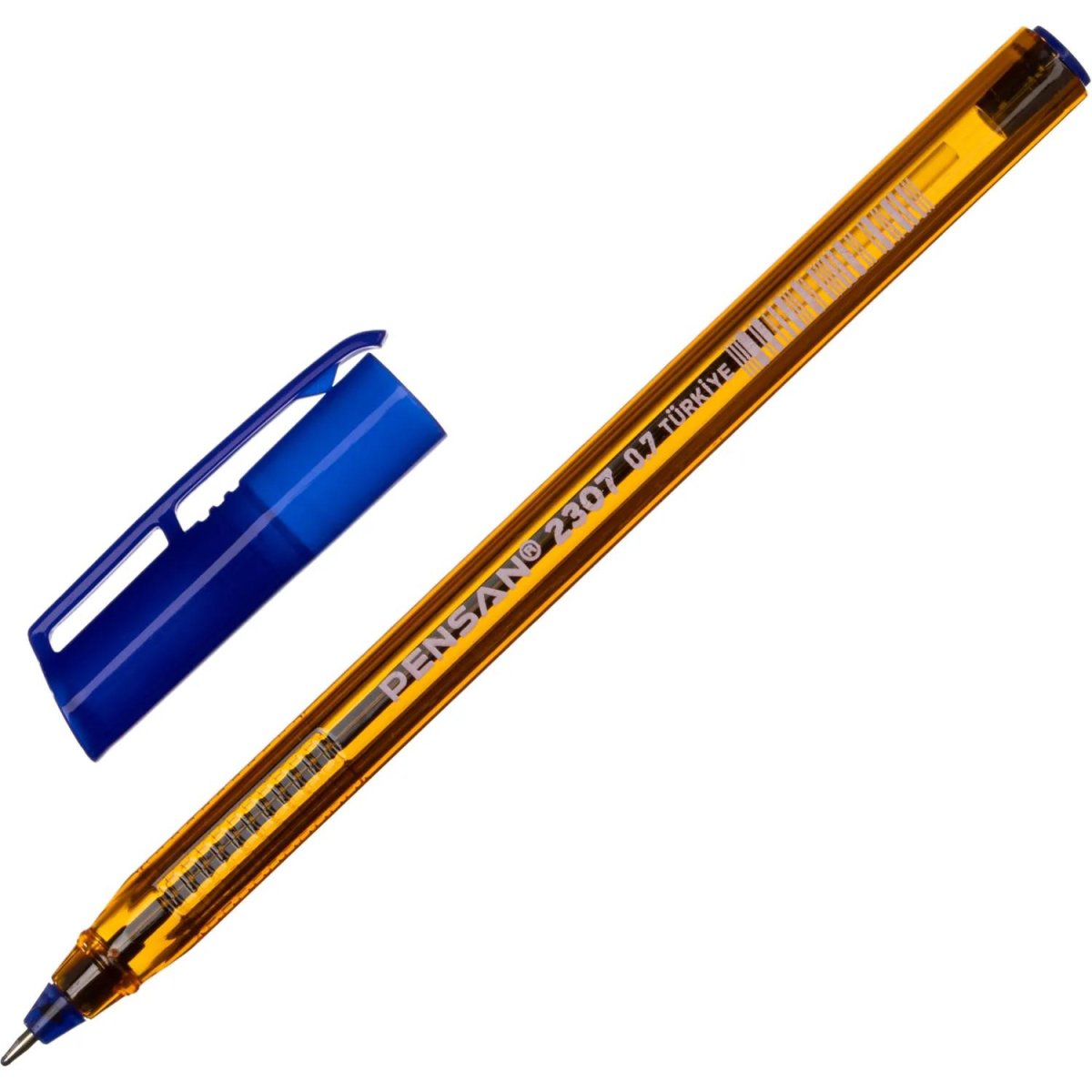 Ручка шариковая неавтоматическая Pensan Honey Triangle синяя (толщина линии 0.5 мм)<br><br>Шариковая ручка с трёхгранным пластиковым корпусом обеспечивает удобный захват и снижает усталость руки при письме. Оранжевый тонированный корпус с рельефным держателем и колпачком в цвет чернил делает изделие заметным и практичным. Игольчатый металлический наконечник с шариком диаметром 0.7 мм создаёт ровную и аккуратную линию толщиной 0.5 мм. Масляные чернила нового поколения с высокой текучестью наносятся мягко и ярко, не замерзают при низких температурах. Прочная конструкция устойчива к механическим и химическим воздействиям. Стержень длиной 125 мм не подлежит замене. Длина письма достигает 1750 м.