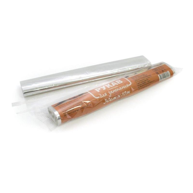 Рукав для запекания 30 см x 10 м с клипсами. Рукав для запекания позволяет приготовить мясо, курицу, рыбу, овощи с максимальным сохранением вкуса и аромата, без использования масла и жира в духовых шкафах и микроволновых печах (в режиме СВЧ), подходит для замораживания продуктов. Рукав также предохраняет кухню от запахов и духовку от загрязнений. Состав: полиэтилентерефталат (ПЭТ). Плотность — 12 мкм. Рекомендуемая температура запекания 200°С. </p>
