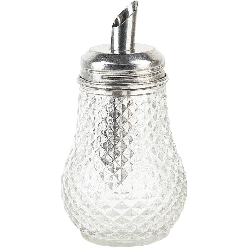 Сахарница Nouvelle Daily 170 мл с дозатором<br><br>Сахарница стеклянная рельефная с крышкой дозатором можно использовать для: хранения сахара, специй, соли и перца, сыпучих продуктов, приправ. Ёмкость может применяться как: сахарница, солонка, перечница, банка для хранения, ёмкость для специй. <br>Комплектация: сахарница — 1 шт. <br>Можно использовать в посудомоечной машине. <br>Размер штуки: 6.5×6.5×12.5 см. <br>Размер товара в упаковке: 7×7×12.5 см. <br>Материал: стекло, нержавеющая сталь. <br>Объём: 170 мл. <br>Вид упаковки: индивидуальная брендированная коробка.